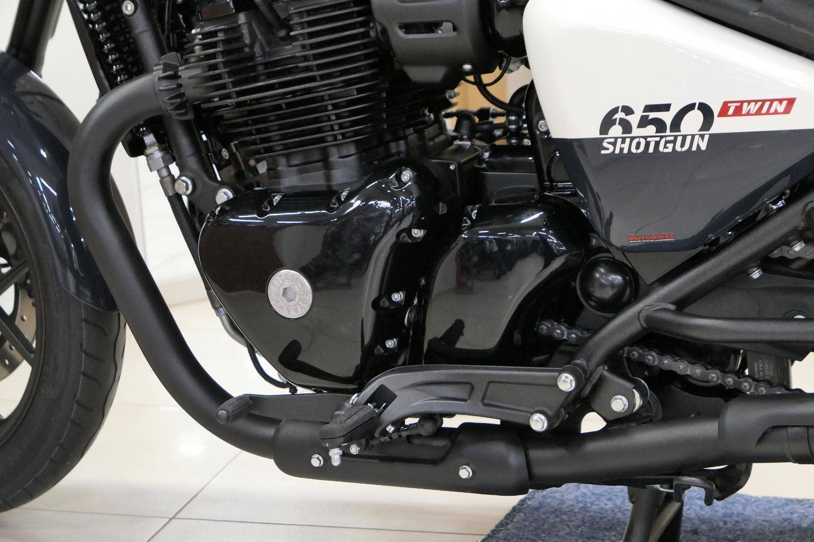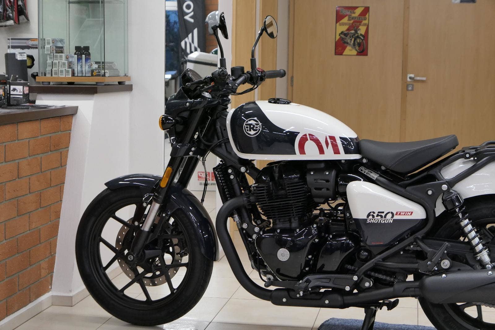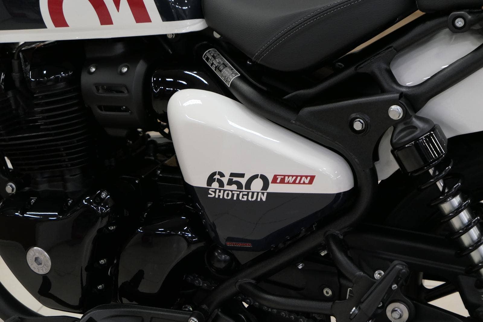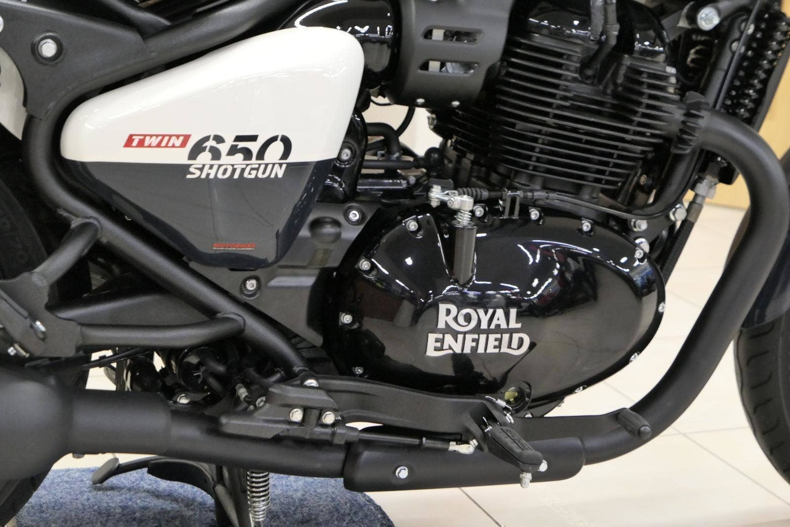 Nový Royal Enfield Shotgun 650 je motocykl, který je definován svým jezdcem. Jeho zcela nová karoserie a postoj jsou prázdným plátnem, které se vzpírá tradiční kategorizaci motocyklů a přebírá osobnost svého jezdce. Jeho modulární konstrukce umožňuje snadné přepínání mezi třemi režimy - od jednomístného přes dvoumístný až po cestovní vůz pro přepravu zavazadel. Otočením klíčku se odklopí sedadlo spolujezdce, což nabízí maximální flexibilitu. Těm, kteří hledají poutavou a agresivní jízdu, nebo těm, kteří hledají pohodovější zážitek, Shotgun 650 bez námahy vyhoví svou vzpřímenou a jistou jízdní pozicí, která podporuje obojí a přizpůsobuje se náladě a stylu jízdy jezdce. Kombinuje retro-futuristický design s moderními prvky. LED světlomet umístěný v nádherné neomoderní gondole na zakázku zůstává věrný estetice neo-retro fúze a zároveň nabízí lepší viditelnost. Motocykl je vybaven digitálně-analogovým sdruženým přístrojem, který je vybaven navigačním systémem Tripper a je navržen tak, aby poskytoval všechny informace, které potřebujete, když se vydáte na cestu. Je také vybaven nabíjecím portem USB, abyste měli svá zařízení na cestách stále nabitá.