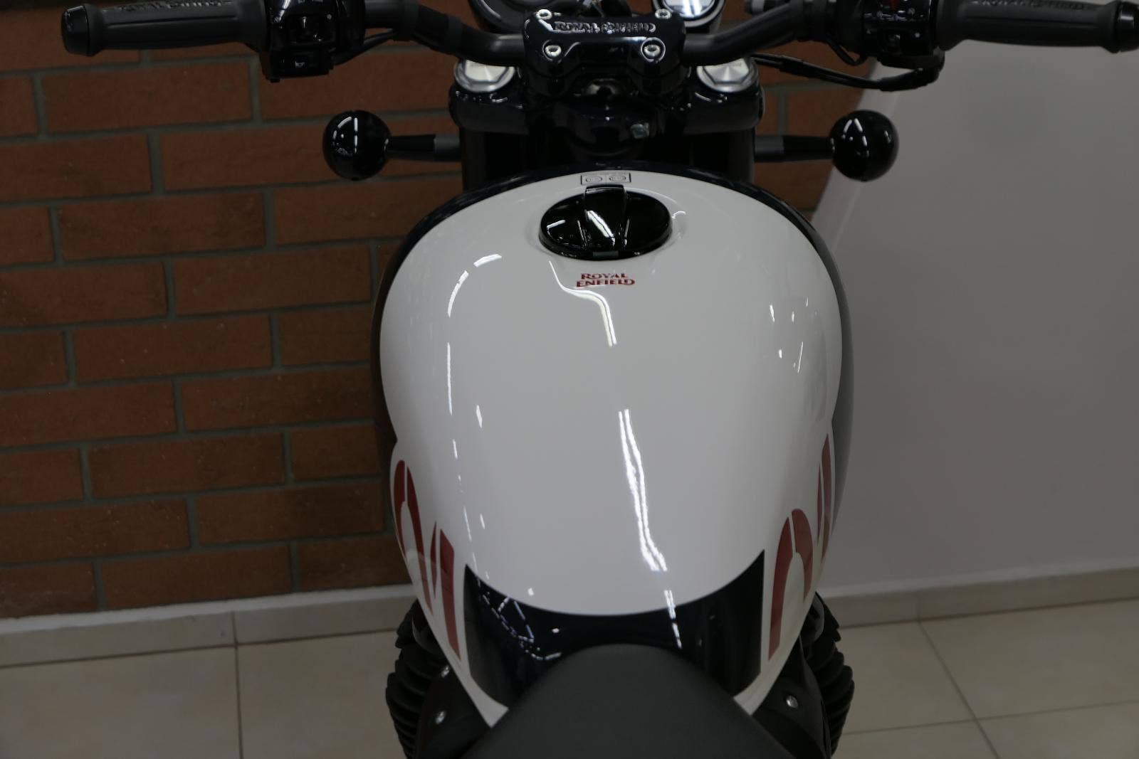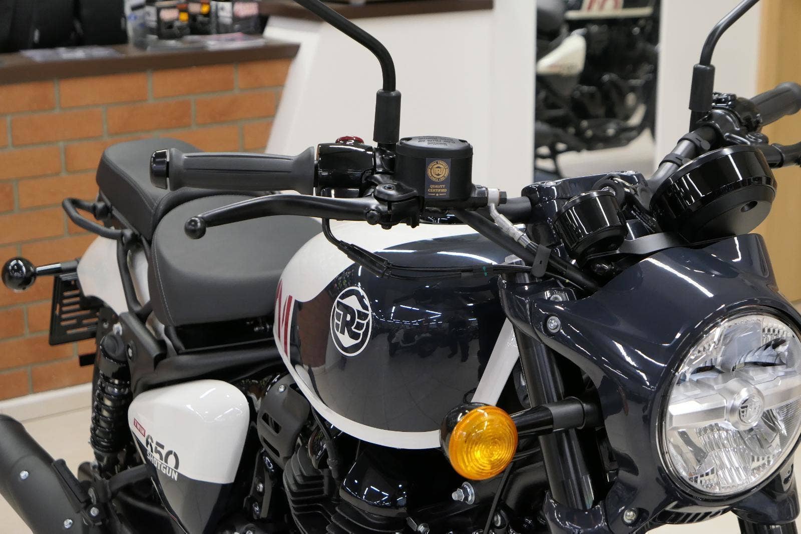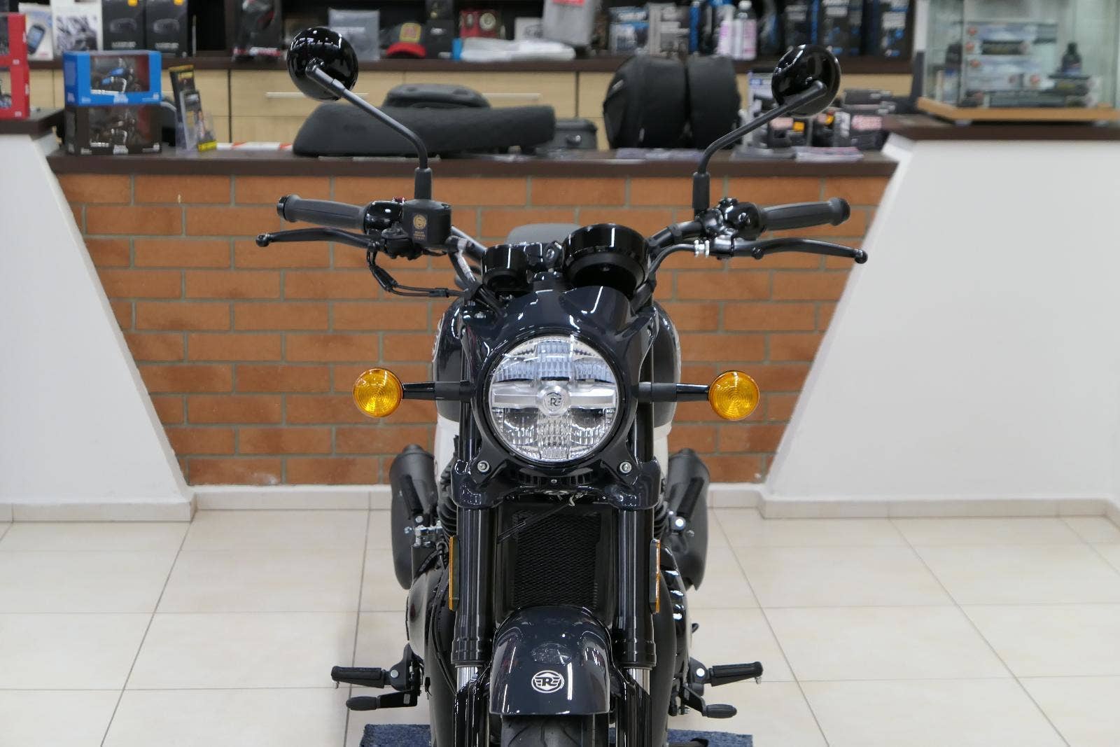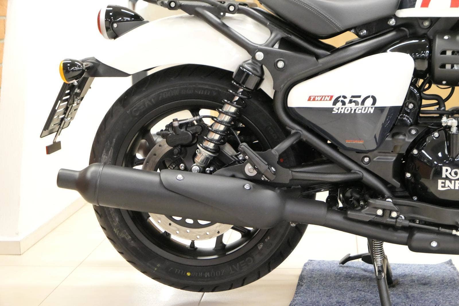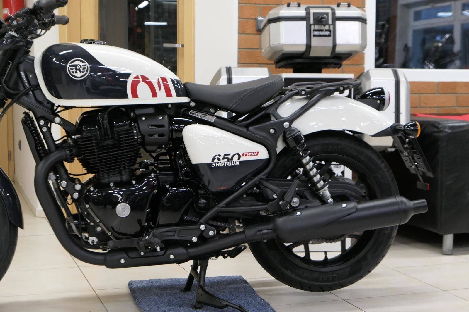 Nový Royal Enfield Shotgun 650 je motocykl, který je definován svým jezdcem. Jeho zcela nová karoserie a postoj jsou prázdným plátnem, které se vzpírá tradiční kategorizaci motocyklů a přebírá osobnost svého jezdce. Jeho modulární konstrukce umožňuje snadné přepínání mezi třemi režimy - od jednomístného přes dvoumístný až po cestovní vůz pro přepravu zavazadel. Otočením klíčku se odklopí sedadlo spolujezdce, což nabízí maximální flexibilitu. Těm, kteří hledají poutavou a agresivní jízdu, nebo těm, kteří hledají pohodovější zážitek, Shotgun 650 bez námahy vyhoví svou vzpřímenou a jistou jízdní pozicí, která podporuje obojí a přizpůsobuje se náladě a stylu jízdy jezdce. Kombinuje retro-futuristický design s moderními prvky. LED světlomet umístěný v nádherné neomoderní gondole na zakázku zůstává věrný estetice neo-retro fúze a zároveň nabízí lepší viditelnost. Motocykl je vybaven digitálně-analogovým sdruženým přístrojem, který je vybaven navigačním systémem Tripper a je navržen tak, aby poskytoval všechny informace, které potřebujete, když se vydáte na cestu. Je také vybaven nabíjecím portem USB, abyste měli svá zařízení na cestách stále nabitá.
