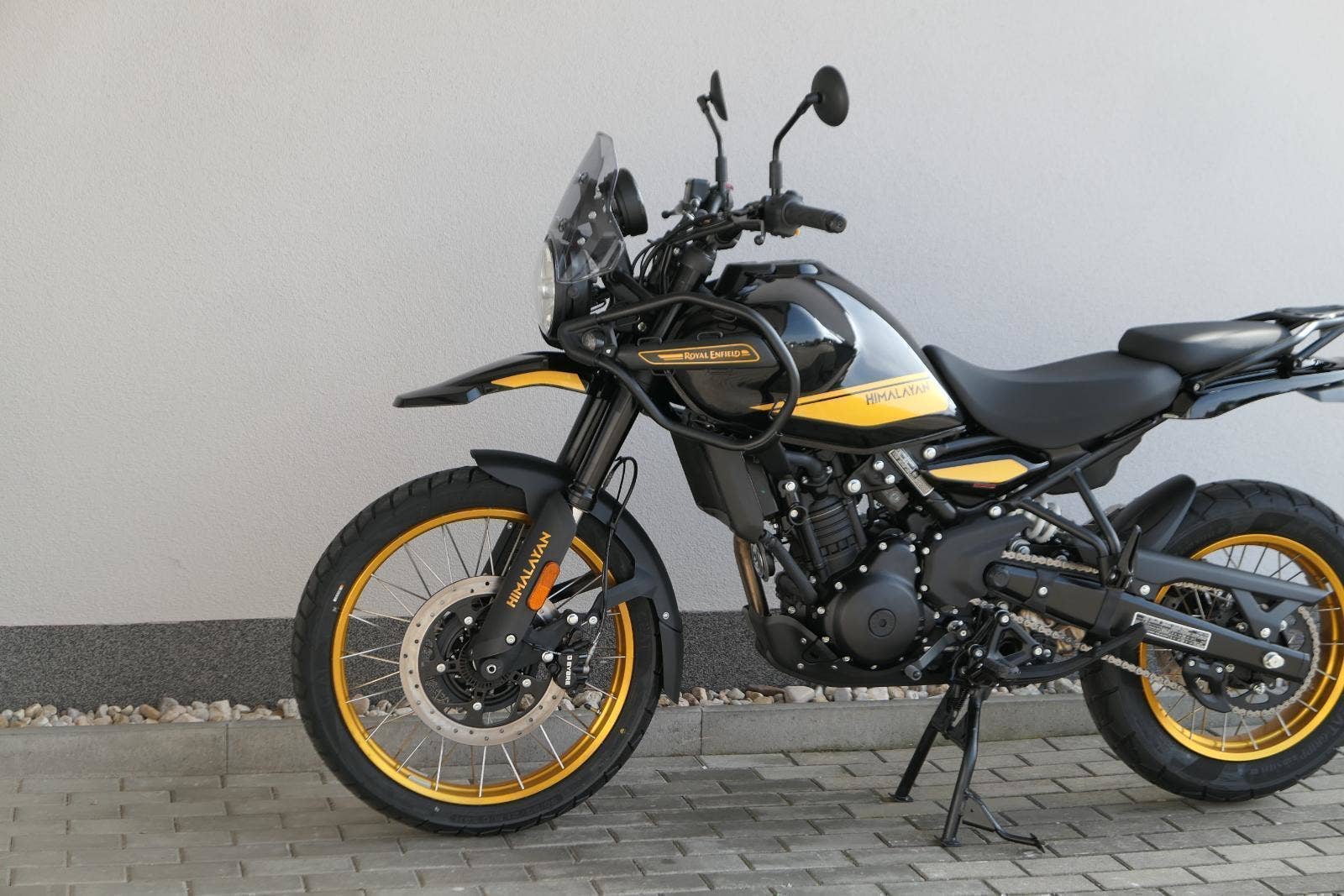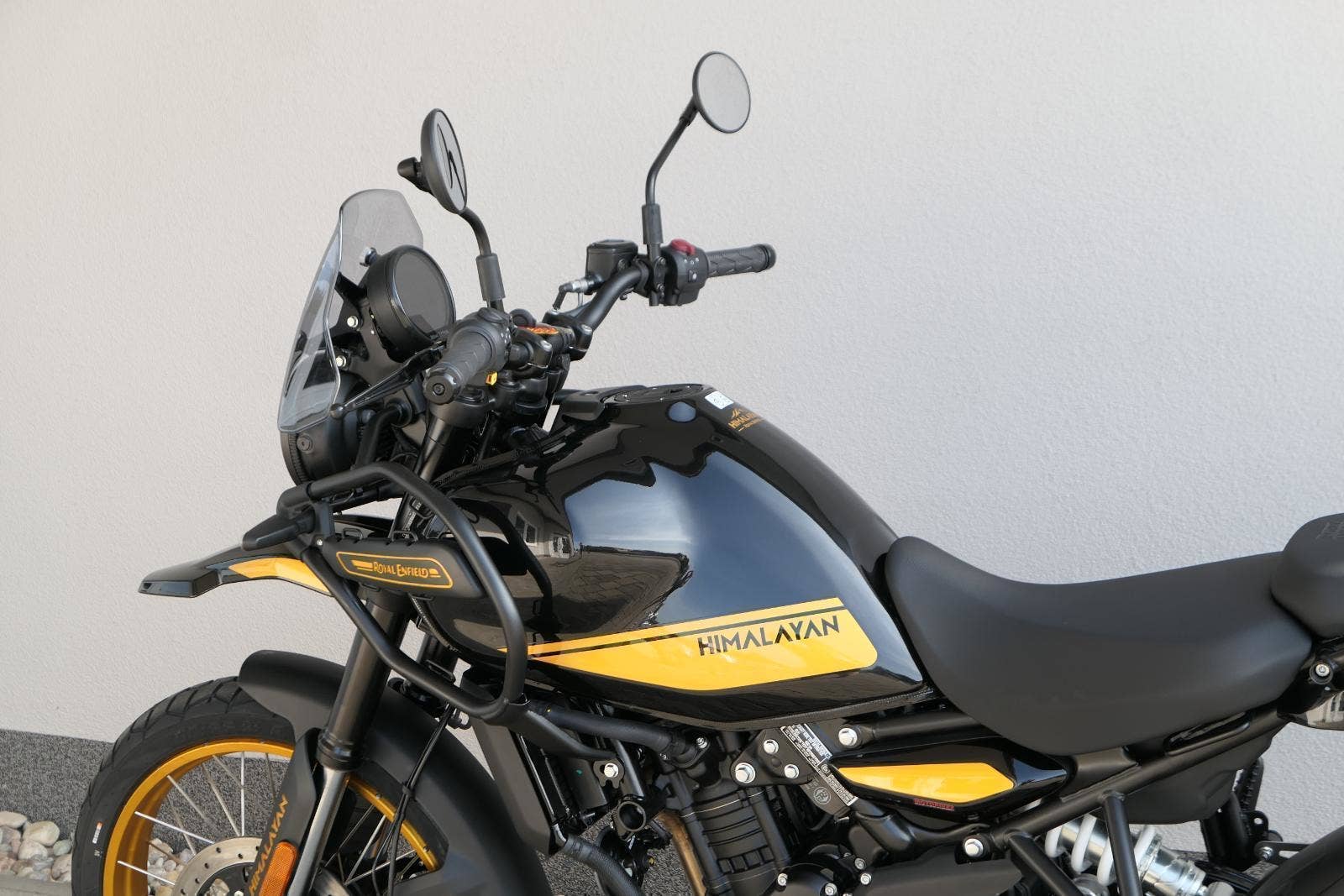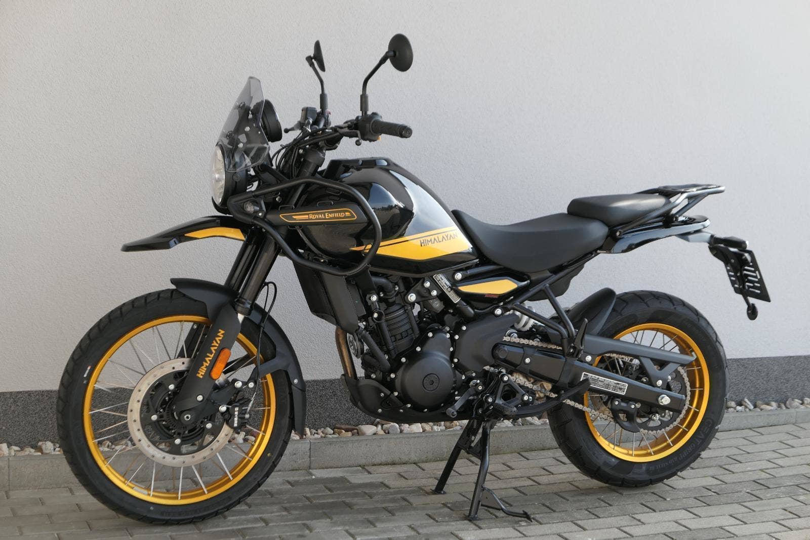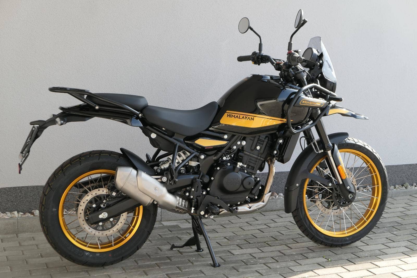 Nový Himalayan, který je evolučním skokem vpřed oproti svému původnímu modelu, jenž bořil mýty, je poháněn motorem Sherpa 450, prvním kapalinou chlazeným motorem společnosti Royal Enfield. Je připraven na dobrodružství s upside-down přední vidlicí a novými funkcemi, jako je Ride-by-Wire a navigační TFT displej TripperDash s plnou mapou.