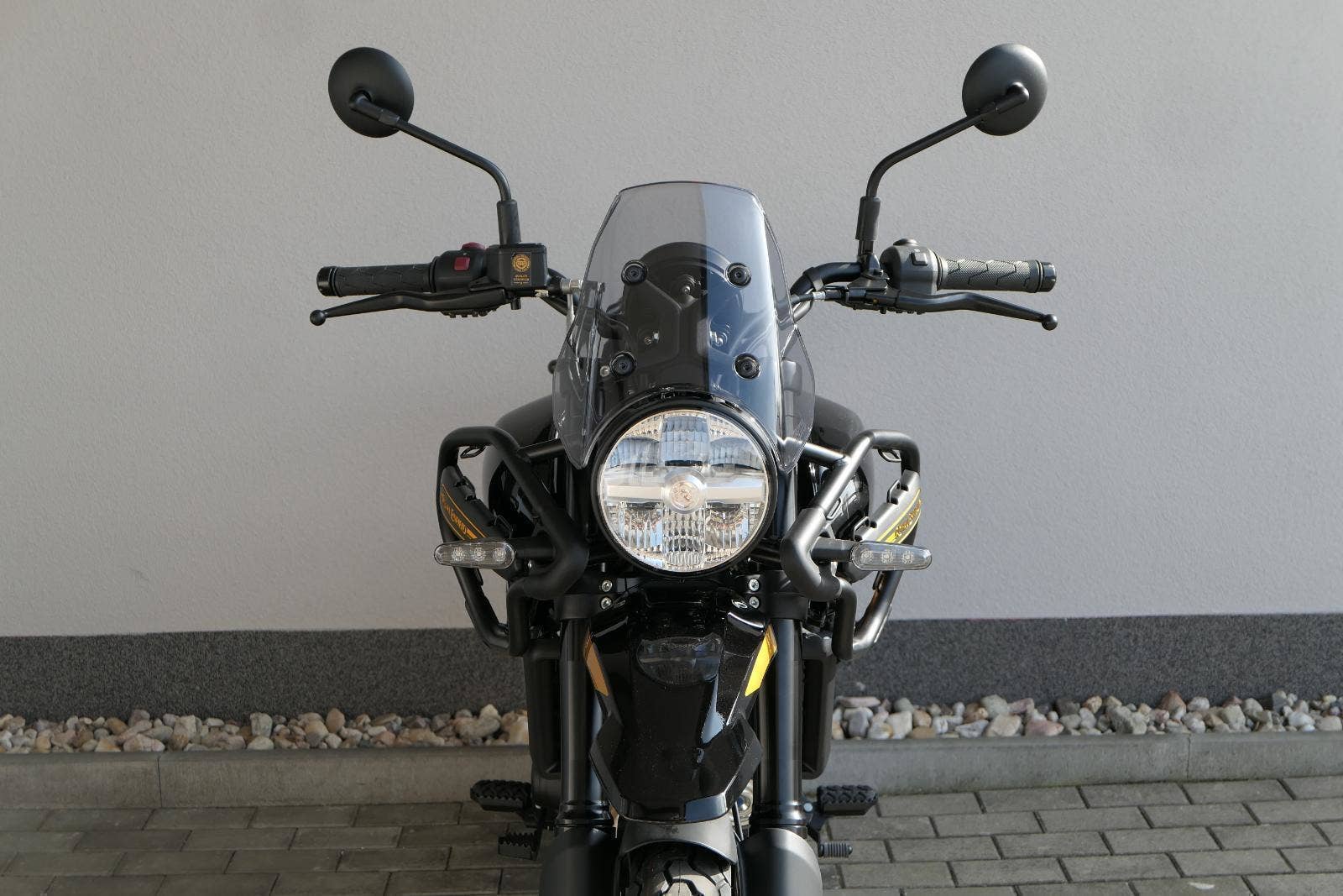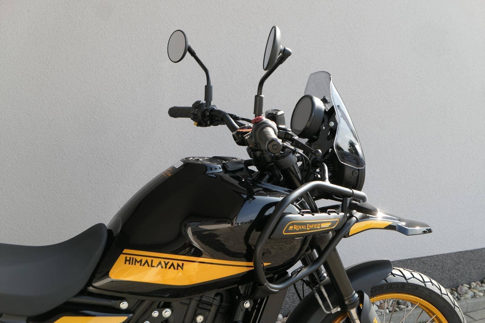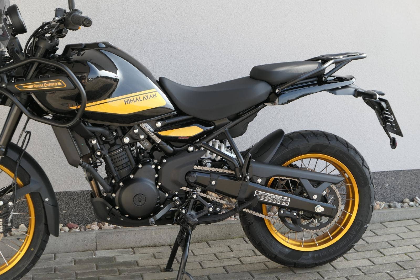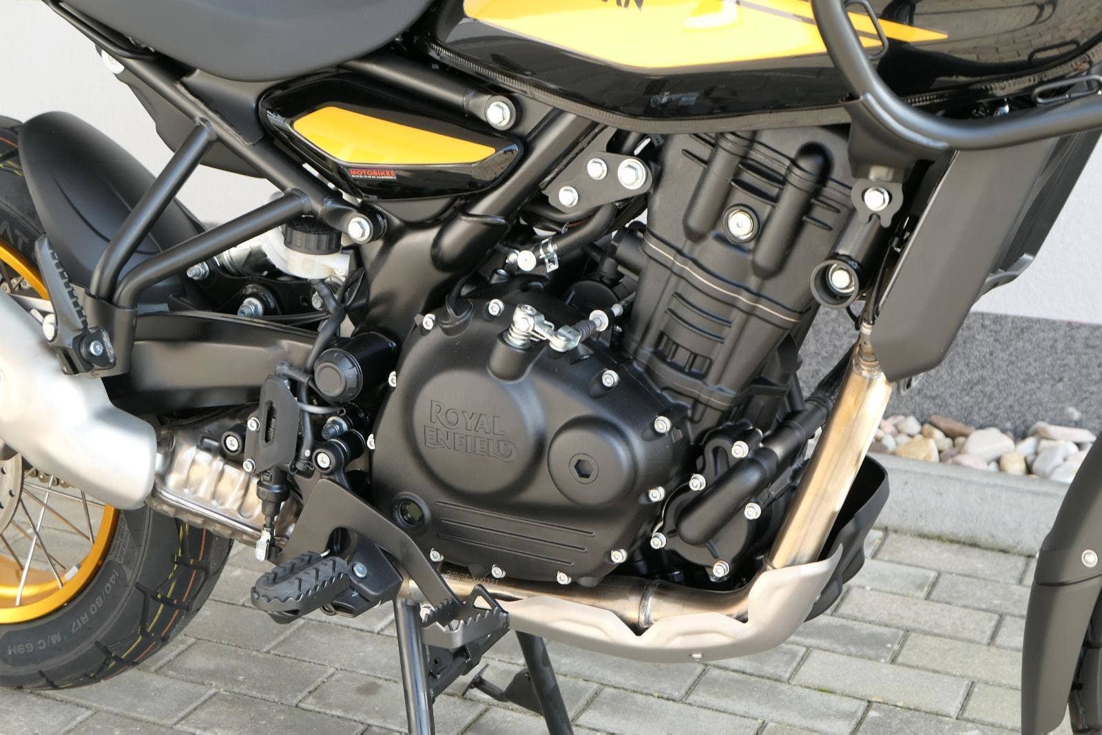 Nový Himalayan, který je evolučním skokem vpřed oproti svému původnímu modelu, jenž bořil mýty, je poháněn motorem Sherpa 450, prvním kapalinou chlazeným motorem společnosti Royal Enfield. Je připraven na dobrodružství s upside-down přední vidlicí a novými funkcemi, jako je Ride-by-Wire a navigační TFT displej TripperDash s plnou mapou.