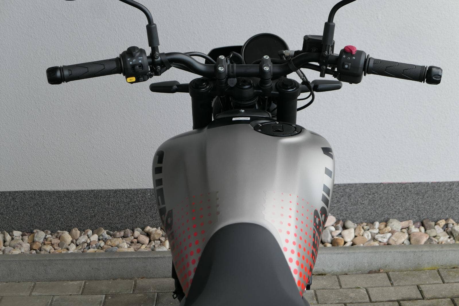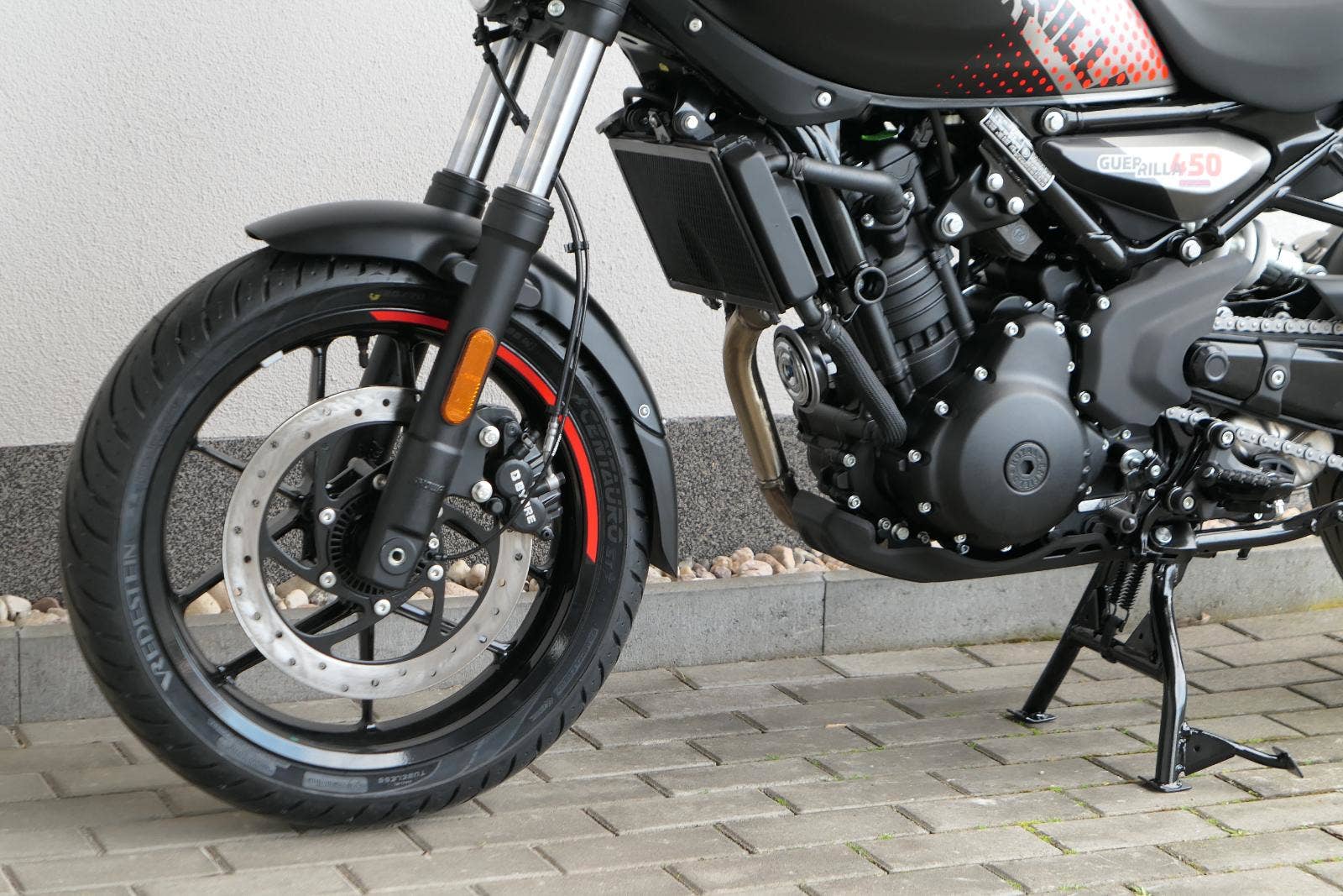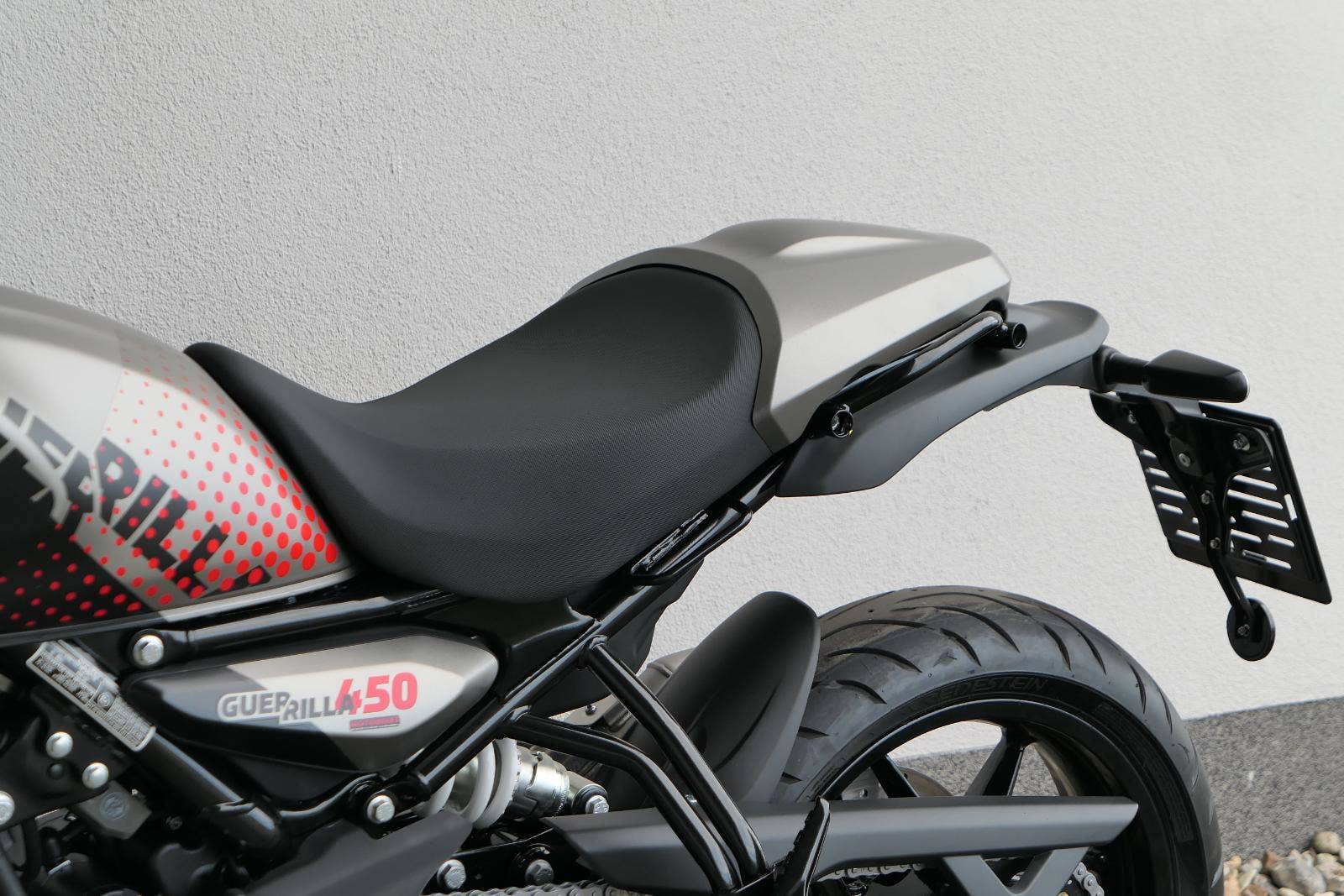 Guerrilla 450 je postavená jako silniční roadster bez terénních ambicí, i když designově lehce odkazuje na scrambler.