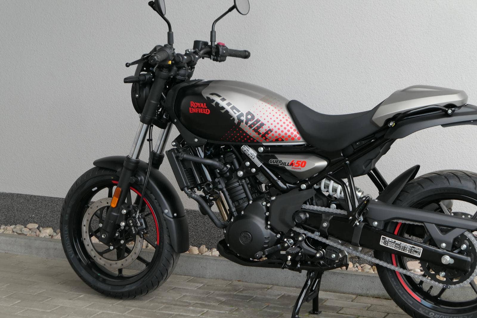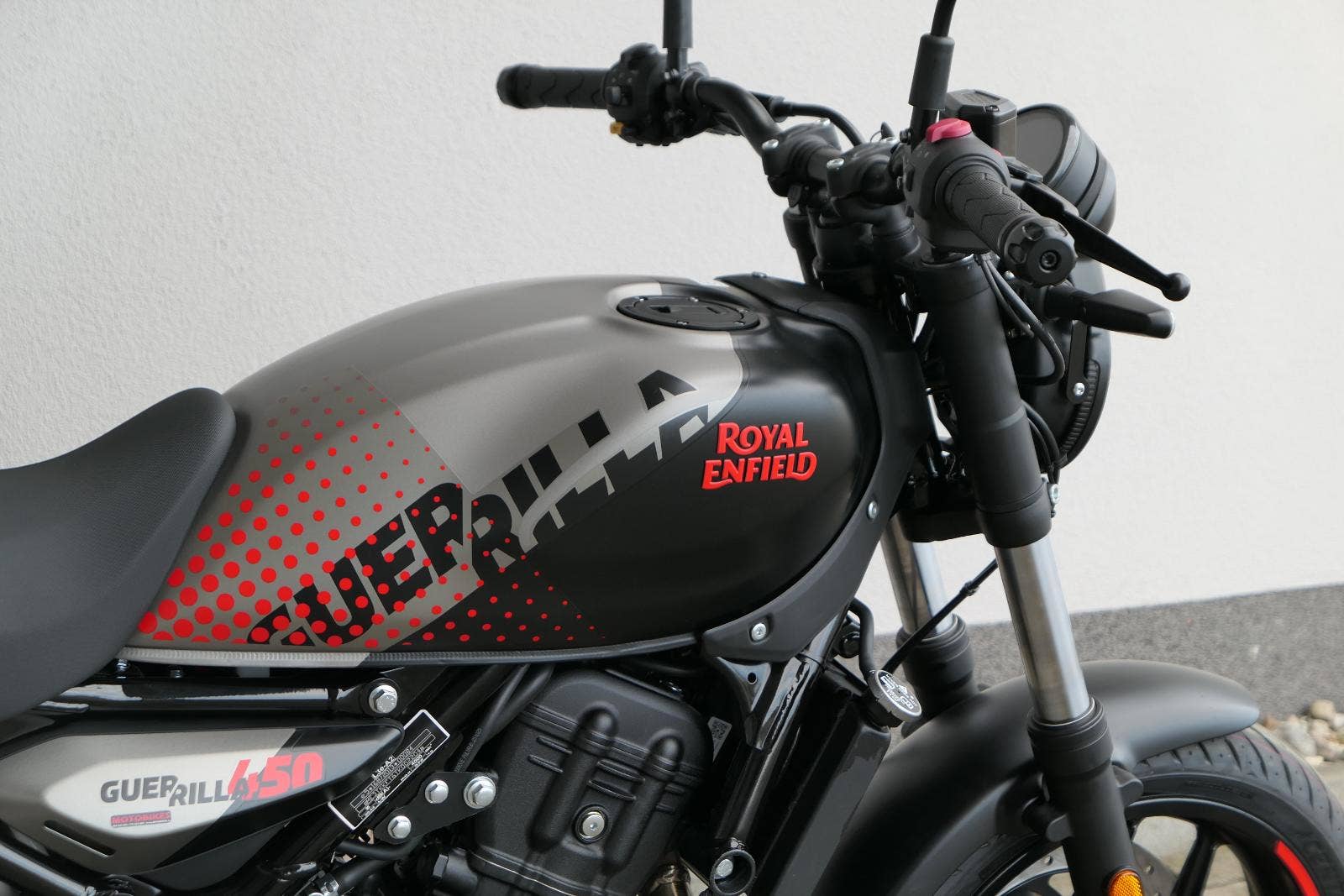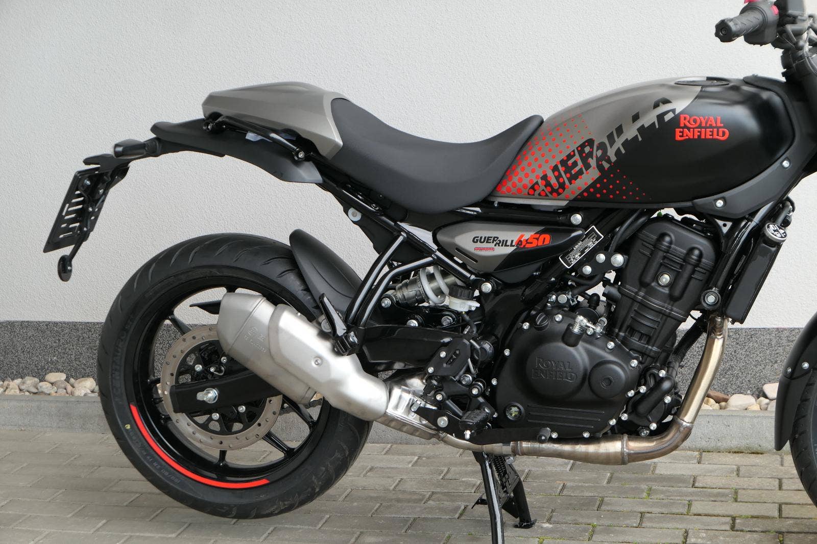 Guerrilla 450 sdílí motor a platformu s modelem Royal Enfield Himalayan 450, ale místo cestování je zaměřená na silnici, každodenní dojíždění a zábavu v zatáčkách.