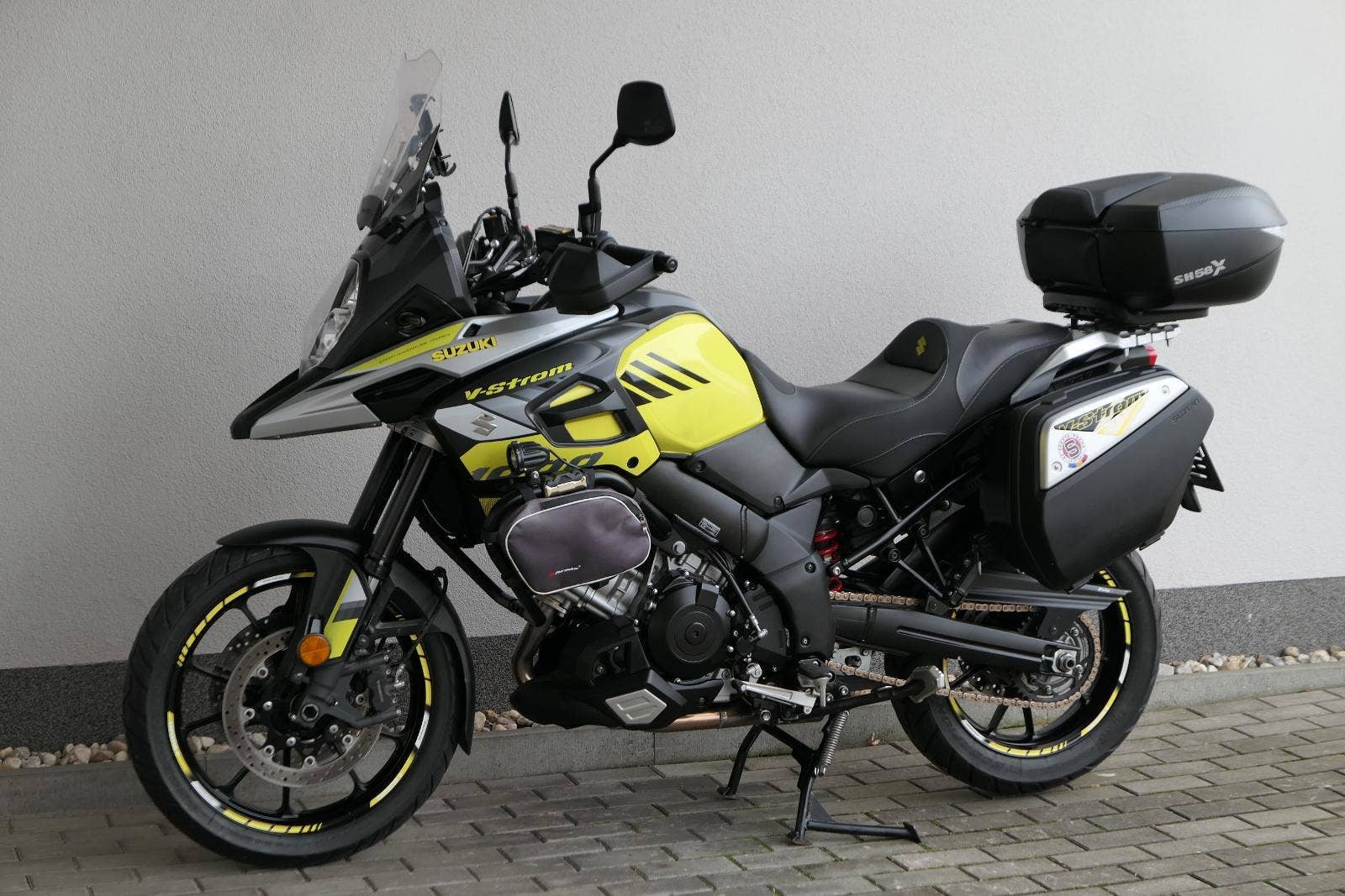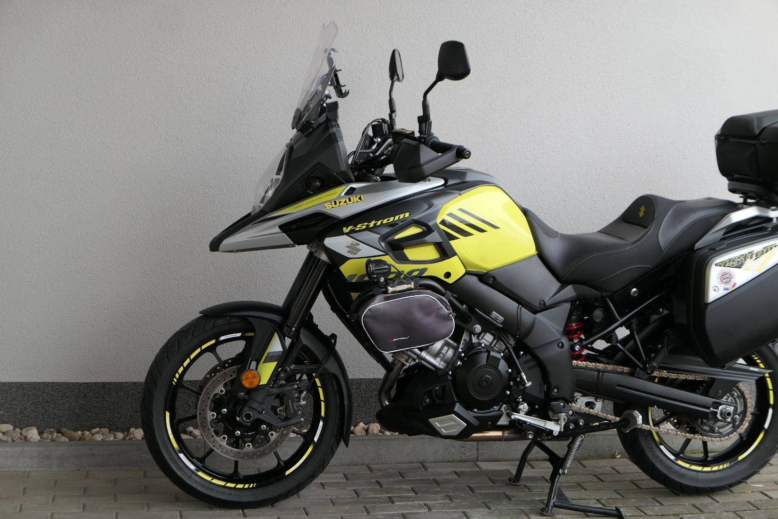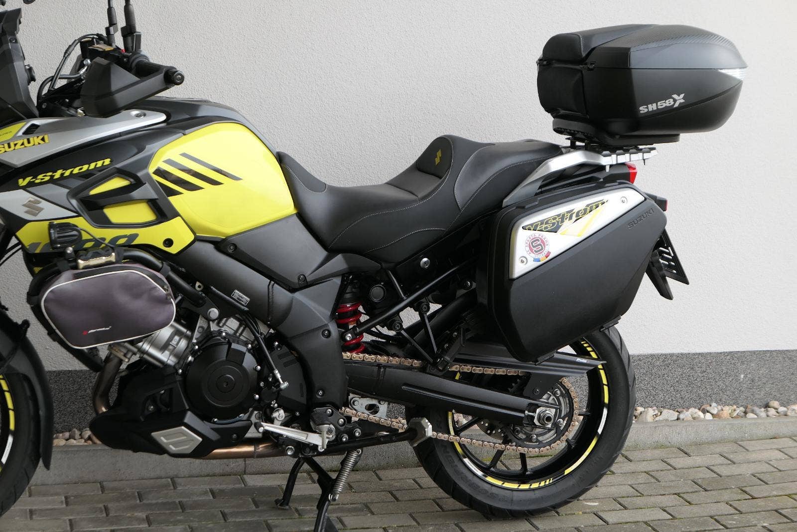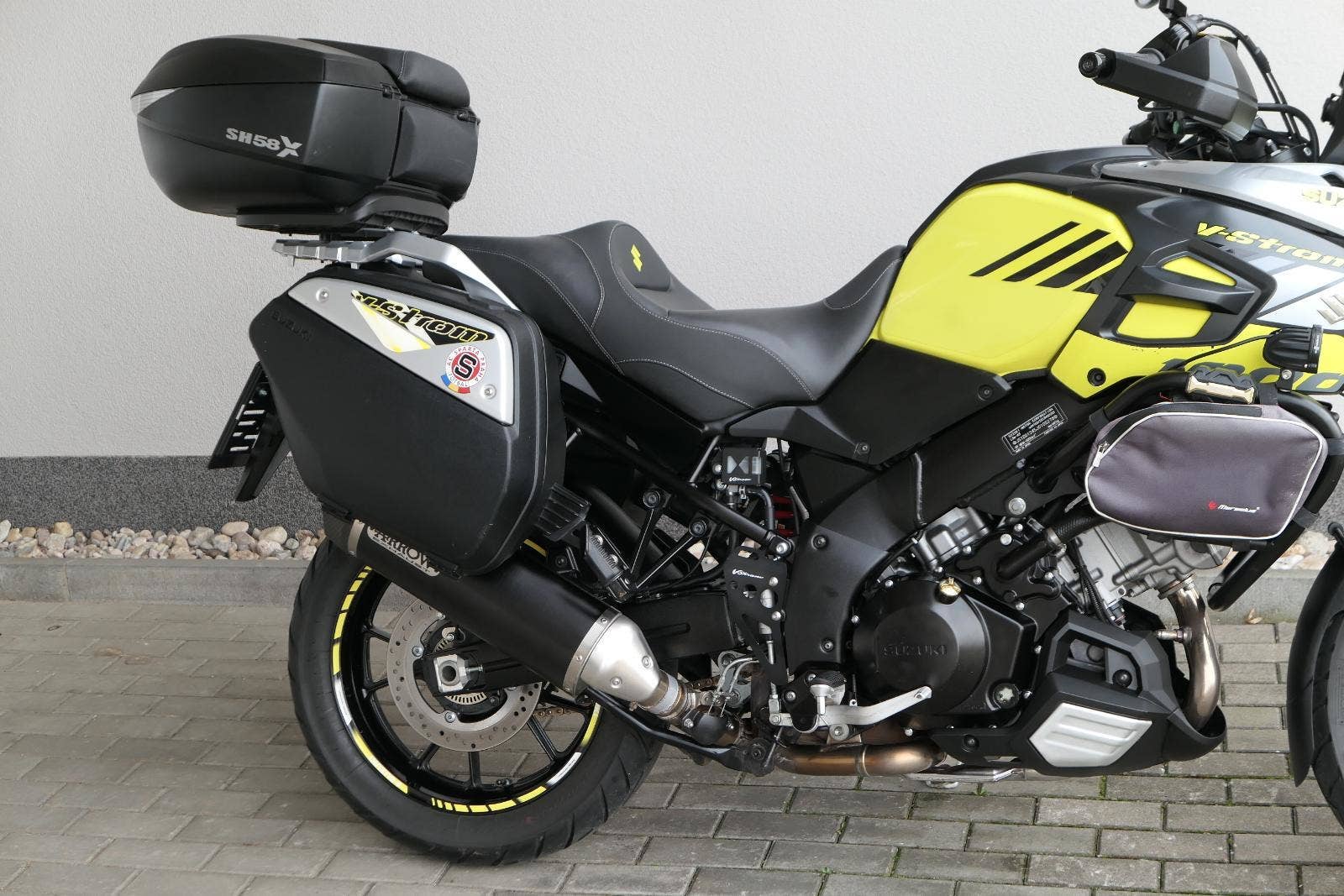 koupeno nové v ČR, 2x klíč, první uvedení do provozu 03/2019, servisní kniha, celkově dva majitelé ( druhý majitel od 5000 km ), ABS, BC, TC, vyhřívané rukojeti, kryty rukou, přídavná světla Interphone, doplňkové blikače, rozšíření zrcátek, ozdobná víčka nádobek kapalin, držák RAM pro telefon, zásuvka 12V, padací rámy + boční brašny, rozšíření bočního stojanu, centrální stojan, kryt zadní brzdové pumpy, zakázkové gelové sedadlo, Topcase SHAD SH 58X s opěrkou pro spolujezdce, sada originálních bočních kufrů Suzuki, laděný homologovaný výfuk ARROW, pravidelně servisovaný a pečlivě udržovaný motocykl, nyní po velkém servisu v Motobikes Bylany, možnost prodeje na splátky, perfketní stav, nutno vidět!!!