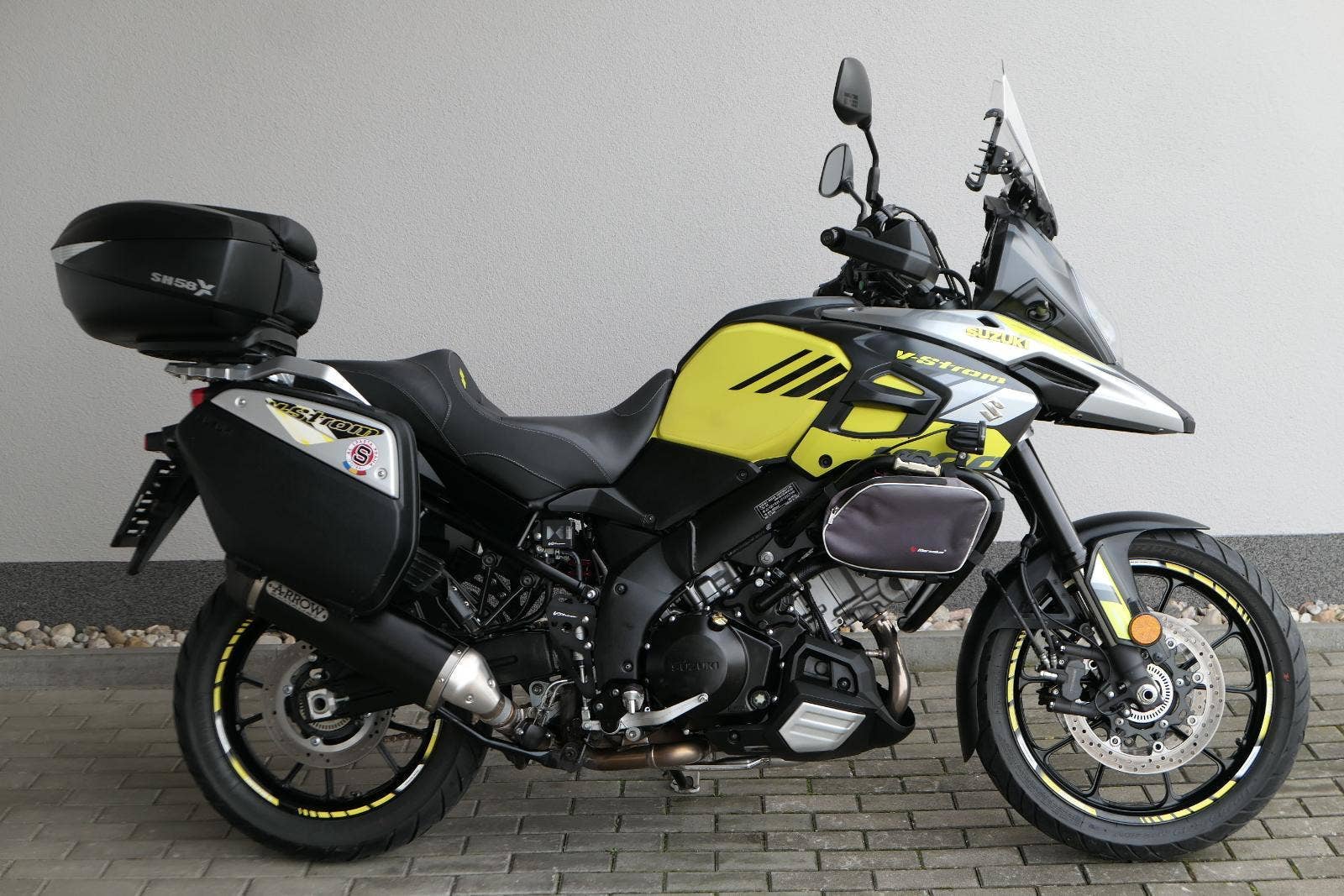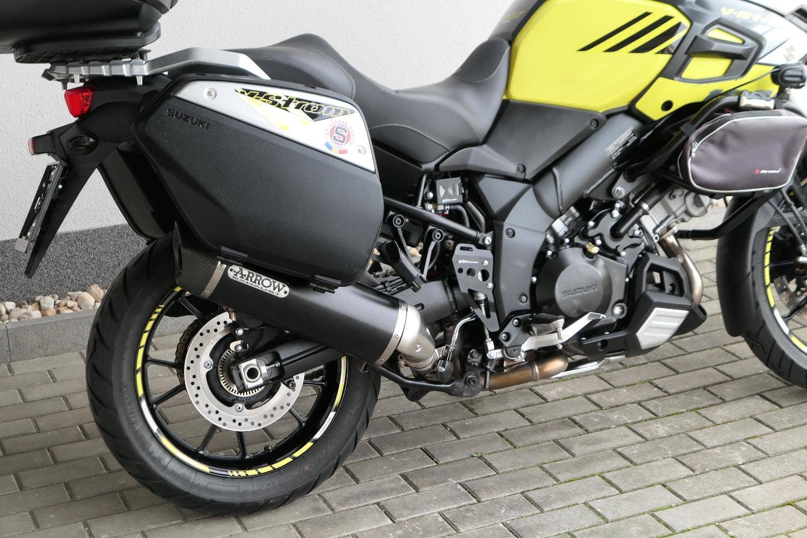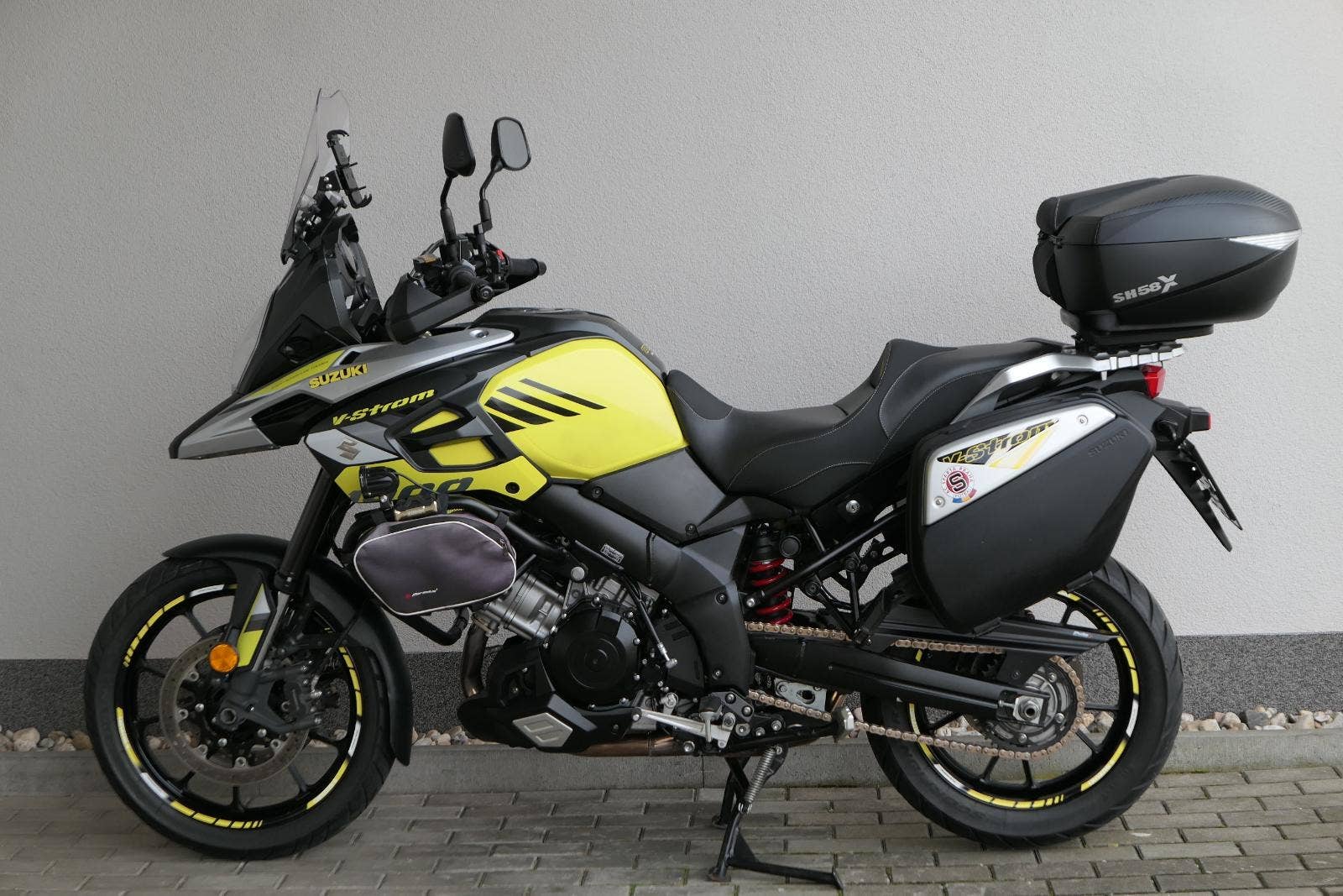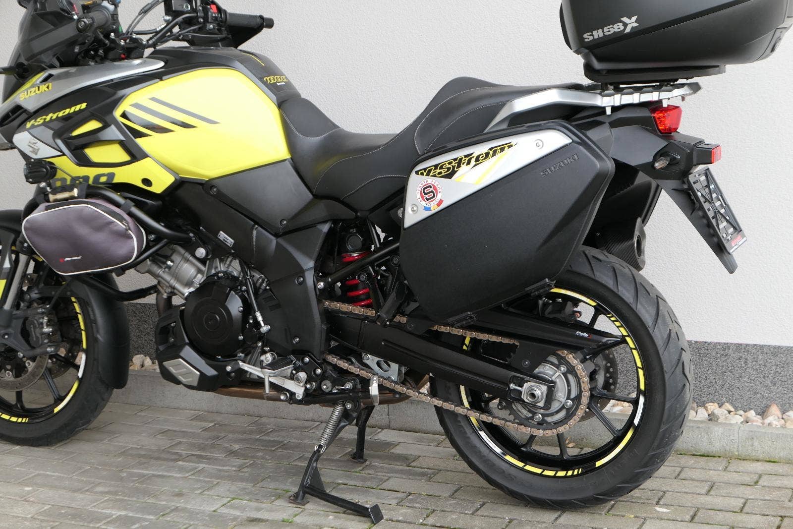 koupeno nové v ČR, 2x klíč, první uvedení do provozu 03/2019, servisní kniha, celkově dva majitelé ( druhý majitel od 5000 km ), ABS, BC, TC, vyhřívané rukojeti, kryty rukou, přídavná světla Interphone, doplňkové blikače, rozšíření zrcátek, ozdobná víčka nádobek kapalin, držák RAM pro telefon, zásuvka 12V, padací rámy + boční brašny, rozšíření bočního stojanu, centrální stojan, kryt zadní brzdové pumpy, zakázkové gelové sedadlo, Topcase SHAD SH 58X s opěrkou pro spolujezdce, sada originálních bočních kufrů Suzuki, laděný homologovaný výfuk ARROW, pravidelně servisovaný a pečlivě udržovaný motocykl, nyní po velkém servisu v Motobikes Bylany, možnost prodeje na splátky, perfketní stav, nutno vidět!!!