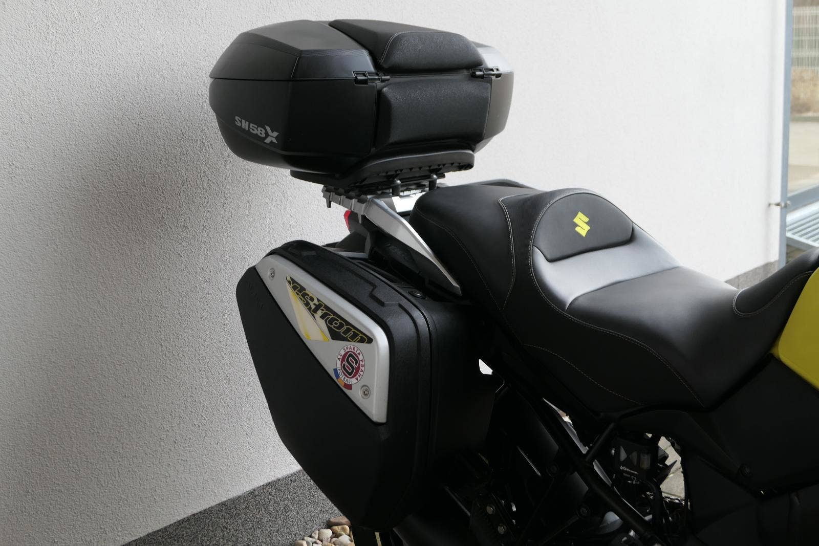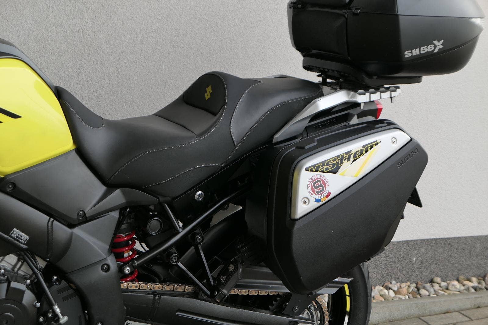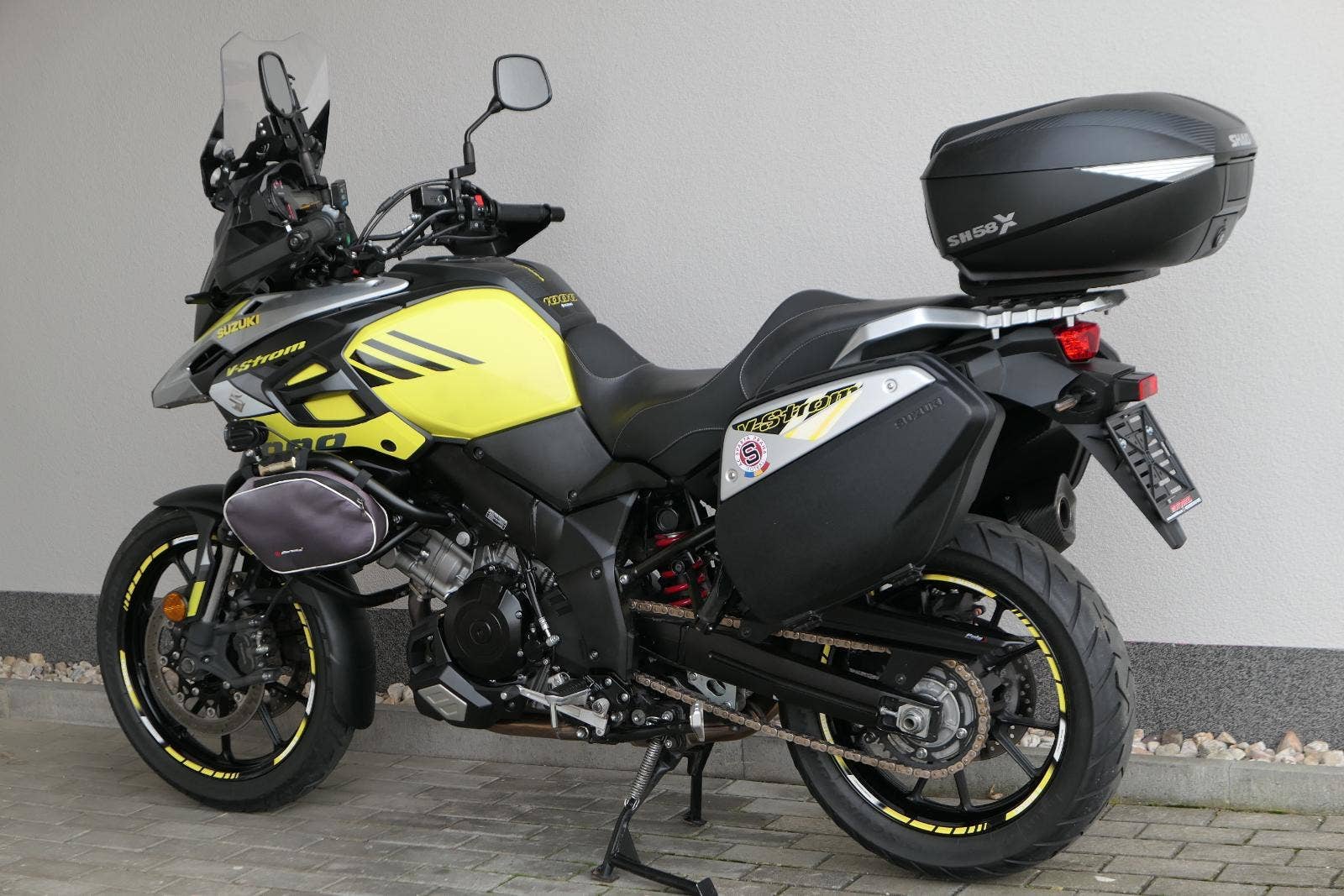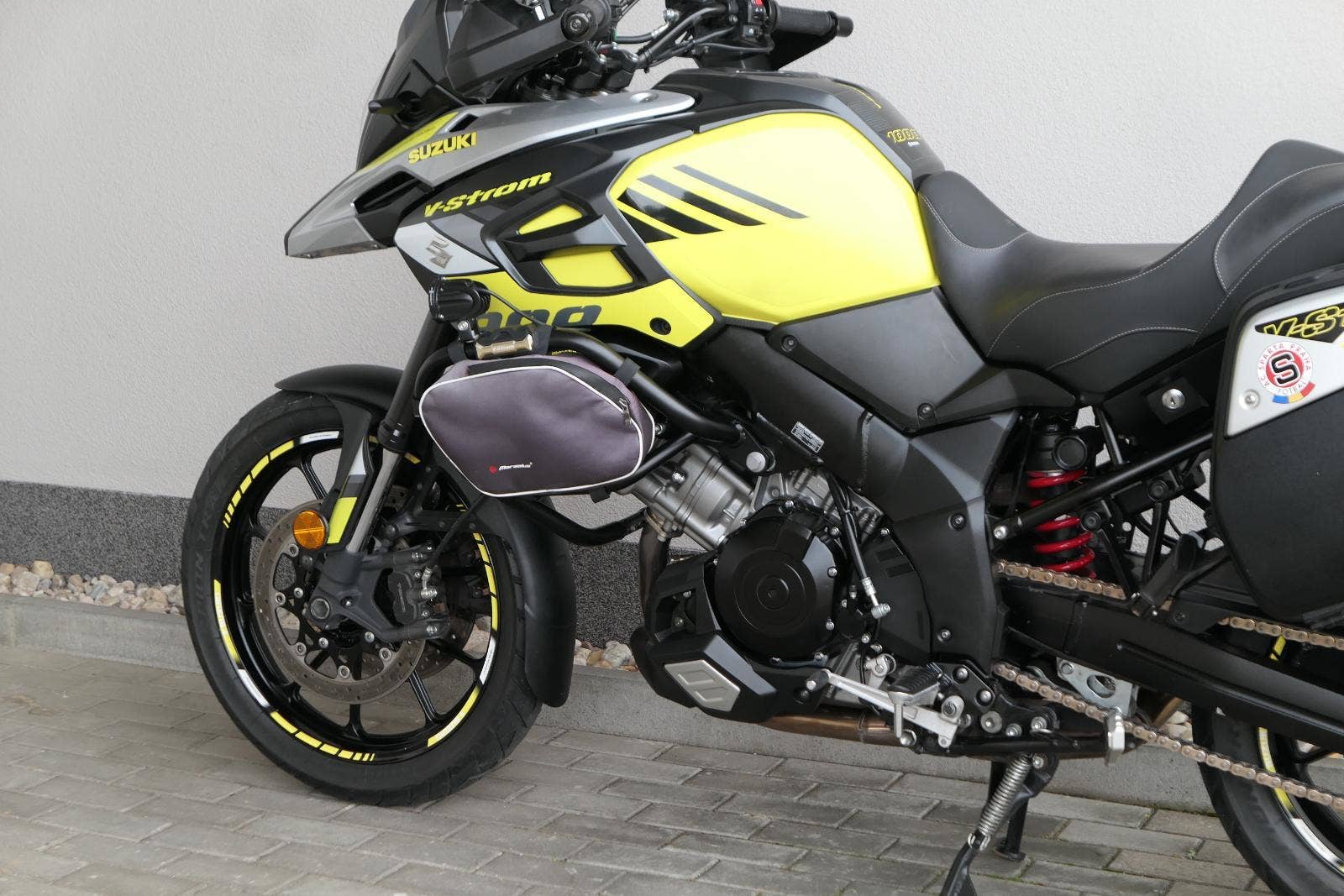 koupeno nové v ČR, 2x klíč, první uvedení do provozu 03/2019, servisní kniha, celkově dva majitelé ( druhý majitel od 5000 km ), ABS, BC, TC, vyhřívané rukojeti, kryty rukou, přídavná světla Interphone, doplňkové blikače, rozšíření zrcátek, ozdobná víčka nádobek kapalin, držák RAM pro telefon, zásuvka 12V, padací rámy + boční brašny, rozšíření bočního stojanu, centrální stojan, kryt zadní brzdové pumpy, zakázkové gelové sedadlo, Topcase SHAD SH 58X s opěrkou pro spolujezdce, sada originálních bočních kufrů Suzuki, laděný homologovaný výfuk ARROW, pravidelně servisovaný a pečlivě udržovaný motocykl, nyní po velkém servisu v Motobikes Bylany, možnost prodeje na splátky, perfketní stav, nutno vidět!!!