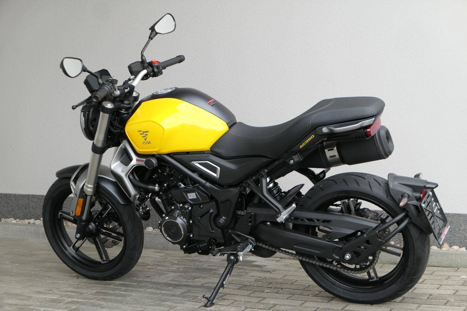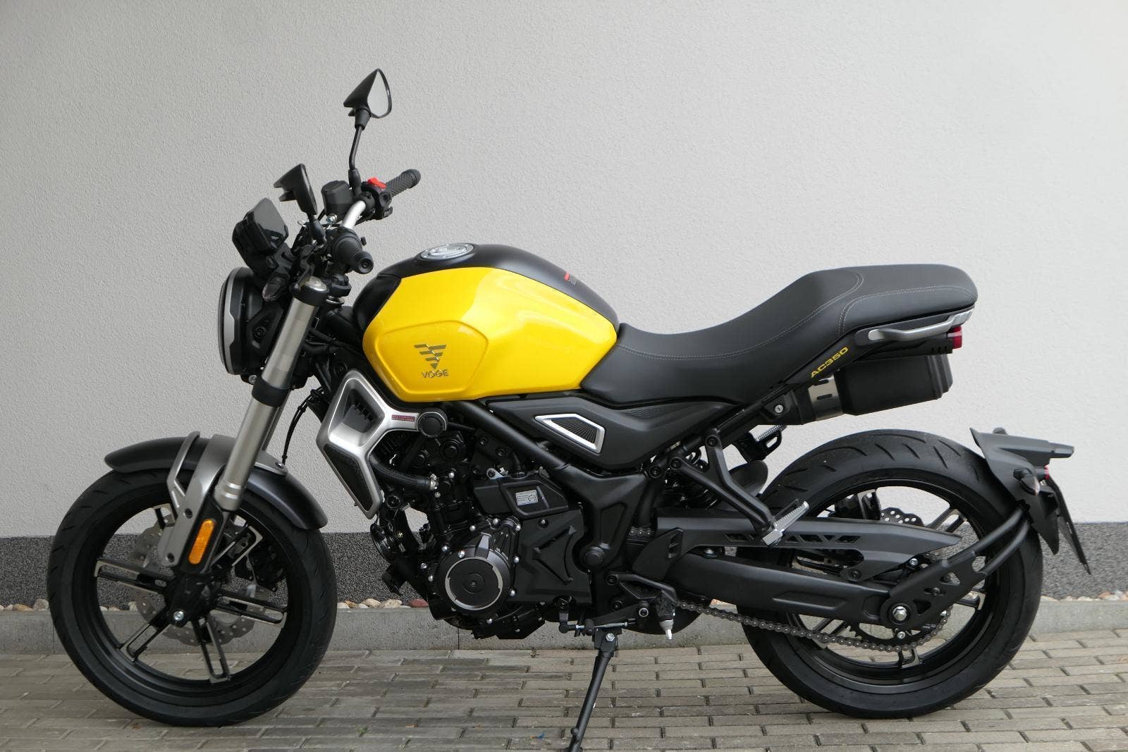 Dvouválcová divoška, co ohromí vzhledem i výkonem. Jsem ztělesněním hbitý síly a drsný elegance. Muší váha (165 kilo) a těžkej výkon (40,8 koní) ze mě dělá divokou bestii, co tě bleskově katapultuje z nuly na sto. Ale neboj! Dokážu jet i poklidný piánko nebo kochací štaci po městě. A hlavně: Díky robustním brzdovejm kotoučům s ABS se nechám okamžitě zkrotit. Nejen síla a rychlost ze mě dělají drsňačku. Drsnej je i můj design. A to doslova. Najdeš na mně hafo detailů se zdrsněnýma povrchama. Drsňáckou atmosféru dotváří fakt temně černá barva, která zdobí většinu mýho těla. Lásku na první pohled podtrhne kombinace oldschoolovýho stylu s ultra moderními prvky. Prostě takový futuretro. Vsadím vejfuk, že se zamiluješ do křivek mý nádrže. U vytržení budeš ze zavěšenýho zadního světla, který vypadá, jako by levitovalo pod sedačkou. Jo, a skvěle si se mnou rozumí taky motorkářky. Těm hraje do karet nejen moje lehkost a snadný ovládání, ale taky fajnovej posez. Sedlo mám totiž v příjemný výšce 780 mm, takže i drobnější moto ladies budou mít nohy pohodlně na zemi bez zbytečnýho šponování. Dvouválcový divočení. Vodou chlazenej dvouválec s objemem 321,8 ccm ze mě dělá hbitou kočku s výkonem, kterej je naprosto srovnatelnej s prvotřídníma mašinama profláklejch značek. Displej přehlednej jako billboard. Sedmipalcová barevná LED přístrojovka ti naservíruje veškerý info tak jasně a přehledně, jako by zářilo na billboardu. Vejfuk s drsňáckým vzhledem i hlasem Rozsah mýho vejfukovýho hlasu mi může závidět kdejakej zpěvák. Když pojedem piánko, bude klidnej jak při rockový baladě. Když to vosolíš, spustím metalovej řev. Vzpřímenej posez na pohodu. Jednokusový provedení sedla ti naservíruje maximální pohodlí. To ještě znásobí příjemná výška sedla, díky který budeš mít haksny v poho na zemi. No, a během jízdy si budeš pochvalovat vzpřímenej posez a tlumení vibrací. Levitující zadní světlo Oválný zadní světlo jako by vzdorovalo zákonům gravitace a levitovalo nad zadním kolem. Díky tomu budeš vypadat jako červená hvězda silnic.