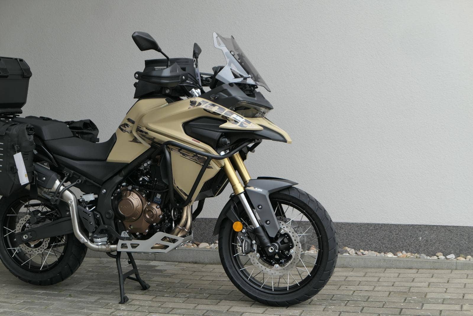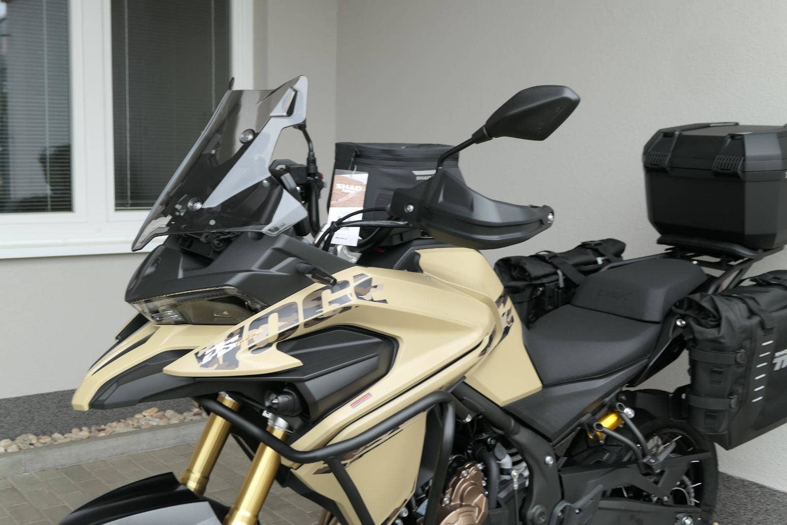 Těšit se můžeš taky na plexi, který si z místa řidiče bez nářadí nastavíš do dvou poloh. Oceníš i hliníkovej kryt motoru, LED světla včetně přídavnejch bodovek, boční i středovej stojan a hafo další výbavičky. Jo, a nově mám taky podsvícený ovladače na řídítkách, takže už žádný tápání ve tmě.