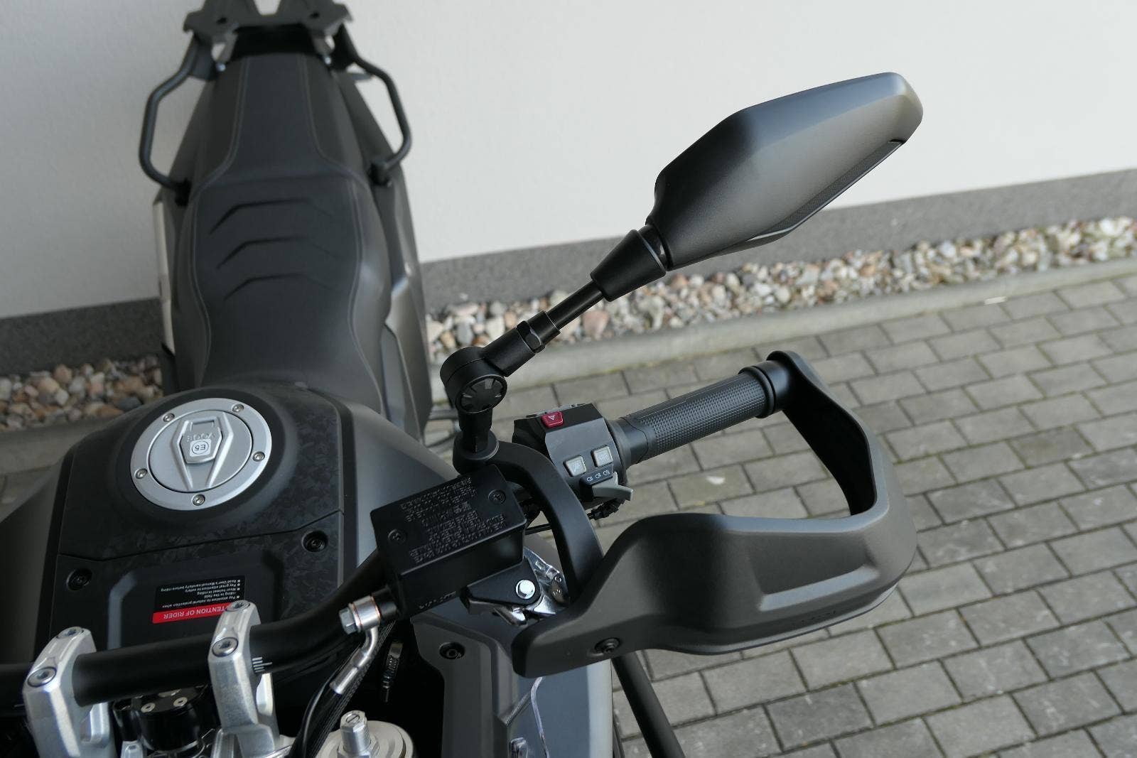 Tahle nádrž není jen designová pecka s ostře řezanejma rysama. Do vymakanýho těla dostaneš 24 litrů. S 5litrovou spotřebou si můžeš užívat svobodu celejch 480 kiláků! Z Prahy tak dofrčíš třeba až do Alp a ještě ti zbude na průzkum horskejch serpentin.