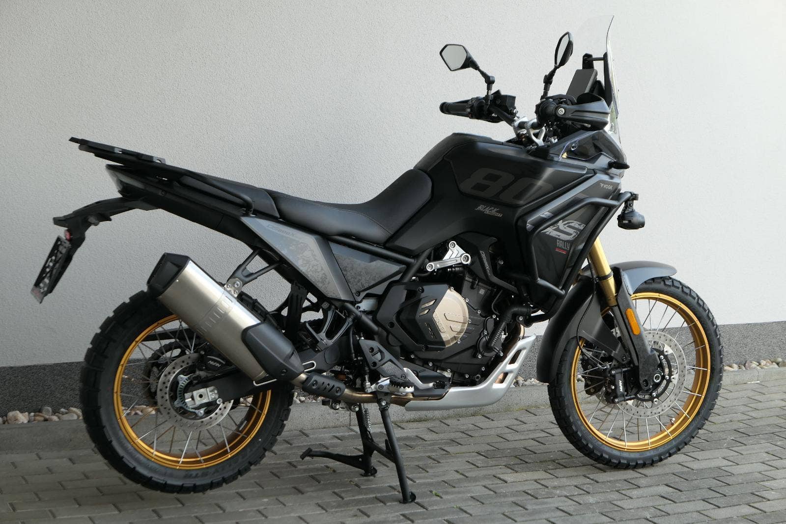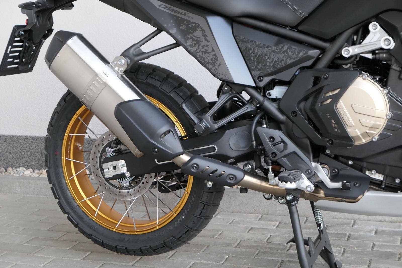 Vpředu najdeš jednadvacítku, vzadu osmnáctku – prostě offroad klasika. Kola jsou samozřejmě drátový a bezdušový. Na ráfkách dostaneš gumy Pirelli Scorpion Rally STR, který si hravě poraděj jak s asfaltem, tak s terénem.