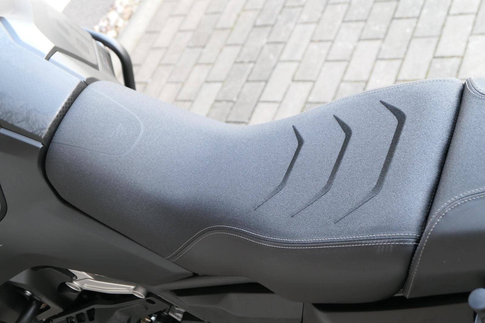 Můj štíhlej pas ti dovolí užít si jak jízdu vestoje, tak vsedě. Vysoký plexi mám fikaně posunutý dopředu, takže ti nebude mlátit do brady třeba při skocích. No a moje stupačky jsou nejen prostorný, ale samože taky zubatý, takže tě podržej v každý situaci.