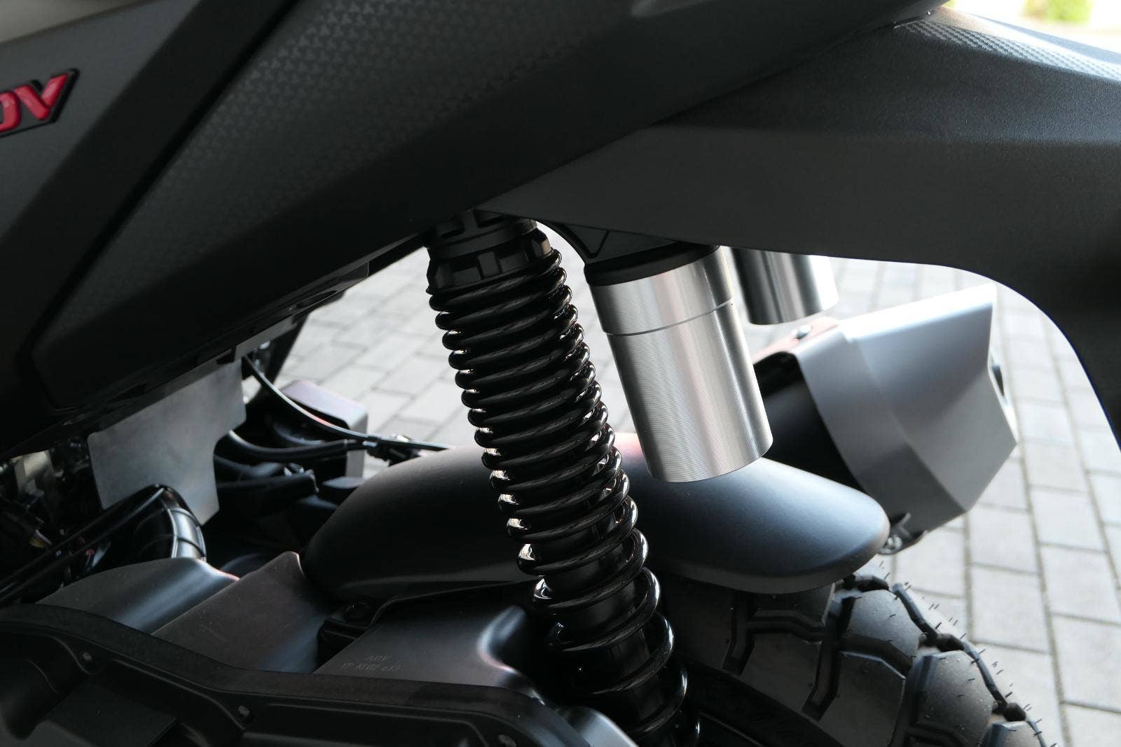 Zadní odpružení 2 x hydraulický tlumič. Zdvih 103 mm