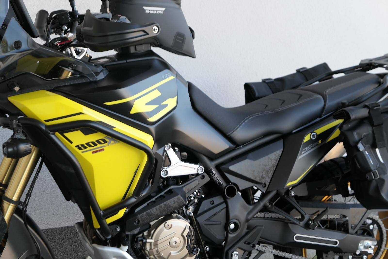 Fungl novej dvouválec 800 ccm. Z tohodle dvouválcovýho vodníka vyždímáš pořádnou sílu. 94 koní tě požene až 190 kiláků v hodině. Vrnět blahem budeš i nad krouťákem – maximum 81 Nm má už v 6 500 otáček. Tenhle fungl novej motor z tebe udělá skutečnýho siláka, ať už budeš frčet po dálnici nebo dovádět v terénu.