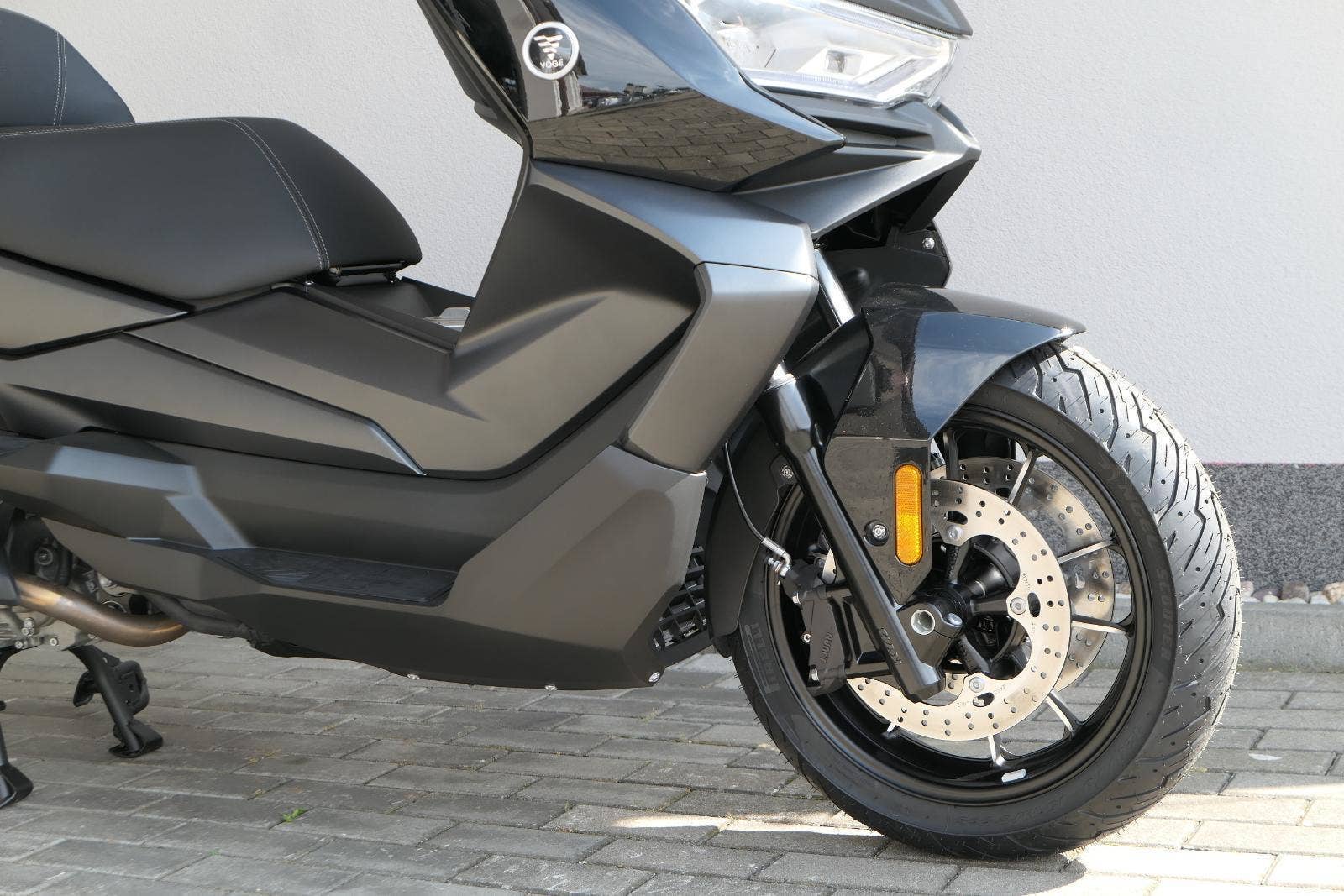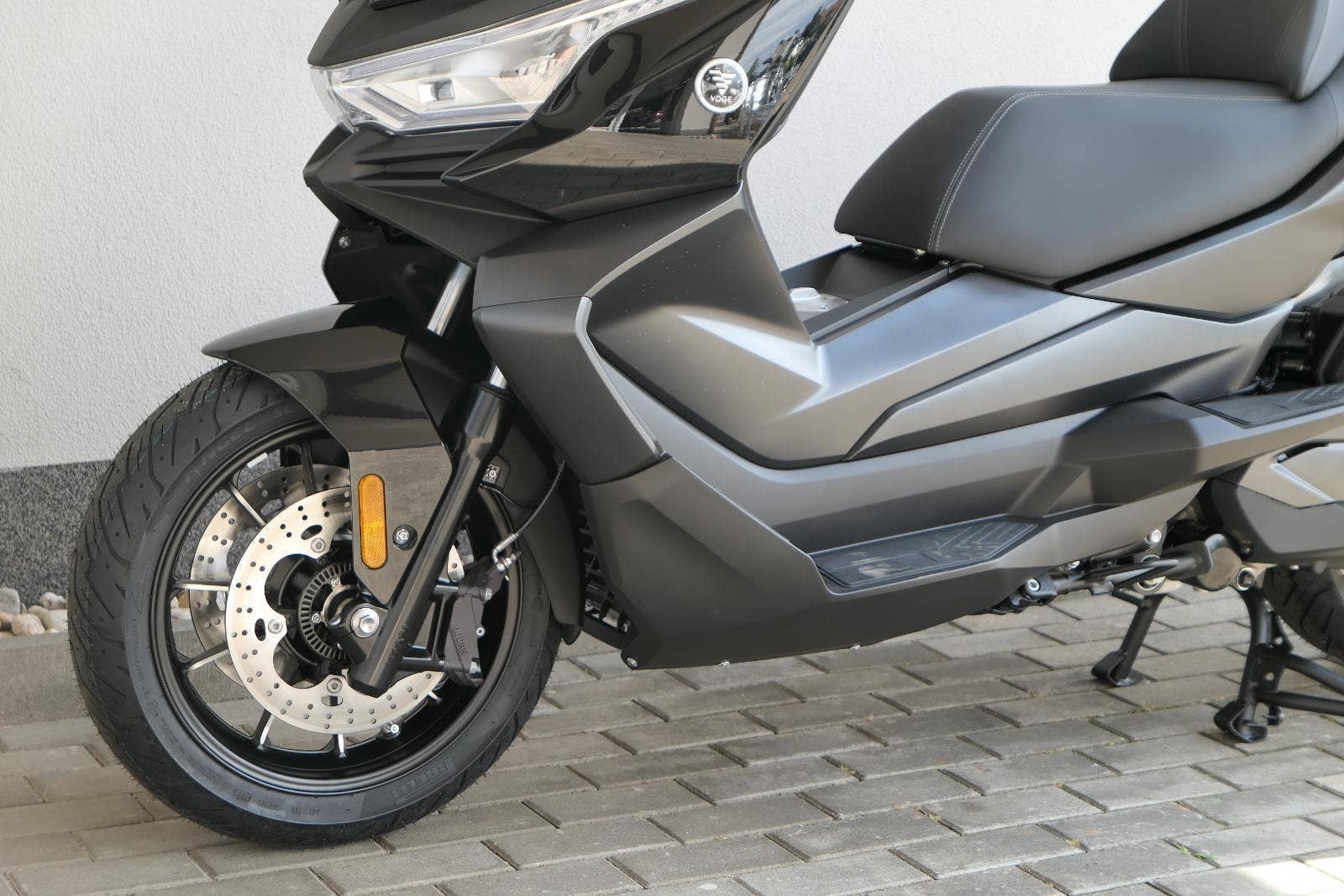 Na společnejch cestách budeš vrnět blahem stejně jako můj čtyřtaktní jednoválec vo objemu 350 ccm. Voceníš festovní podvozek od japonský Kayaby, spolehlivý vstřikování BOSCH, pekelně dobrý gumy Pirelli Angel Scooter i skvěle fungující brzdy od španělskýho J. Juanu.