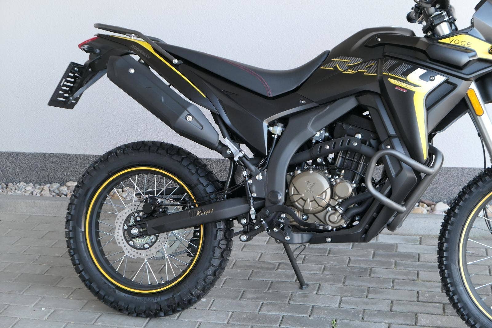 Offroadový dovádění ti ulehčí i osazení kol – vpředu 21“ a vzadu 18“. Navíc si na to tata můžeš vypnout zadní ABS od Bosche. Tím výčet terénní výbavičky, kterou dostaneš už v základu, zdaleka nekončí. Vepředu najdeš upside-down vidlici a vzadu se o tvý pohodlí stará kyvka z lehký slitiny, u který si můžeš poštelovat tlumič. Samozřejmostí je taky ocelovej rám s dvojitou kolíbkou, vysoký plexi, padací rám nebo endurácký sedlo. No, samozřejmostí. Samozřejmostí je to u Voge. Obdobný mašiny vod konkurenčních značek jsou proti mně v základu docela holátka, a ještě za ně vyplázneš o pár desítek tisíc víc.