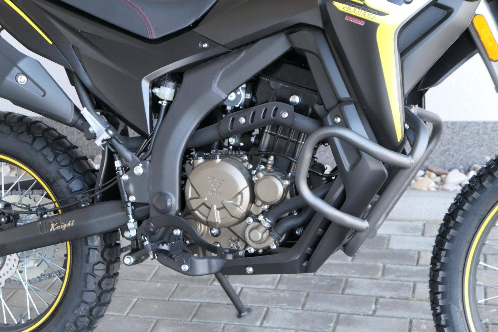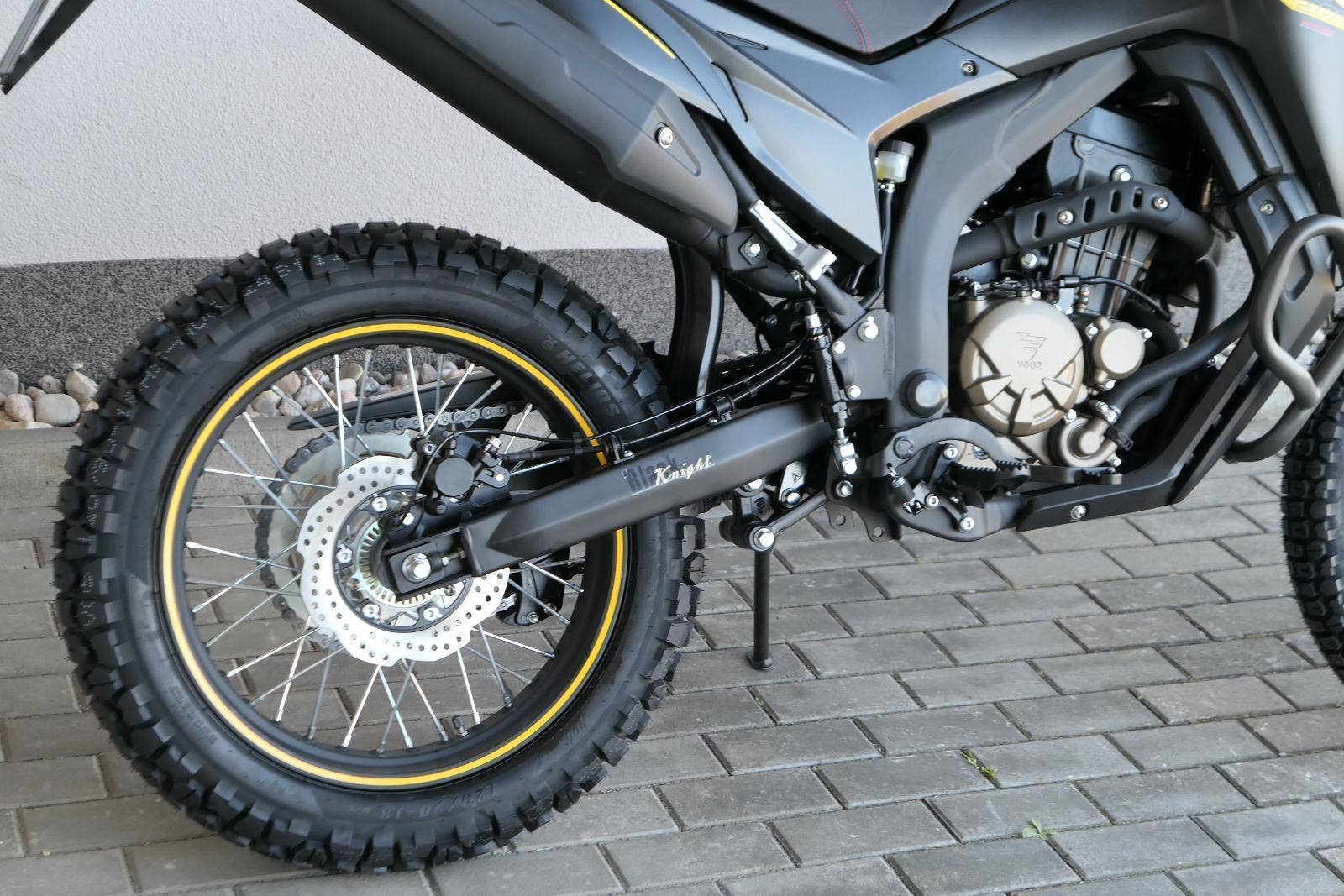 Míň je někdy víc. Řekli si vývojáři ve světoznámý fabrice Loncin a navrhli mě jako lehký a obratný enduro. S plnou nádrží mám pouhejch 158 kilo, takže se mnou snadno můžeš dělat psí kusy v terénu. Tomu nahrává i můj živej motor – čtyřtaktní jednoválcovej vodník vo objemu 292 cm3 a s výkonem přes 28 koní. Uvidíš, že se nezaleknu žádnýho stoupání a hravě si poradím se šutráky i s hlubším bahnem. Do karet nám bude hrát taky moje světlá vejška 280 mm.