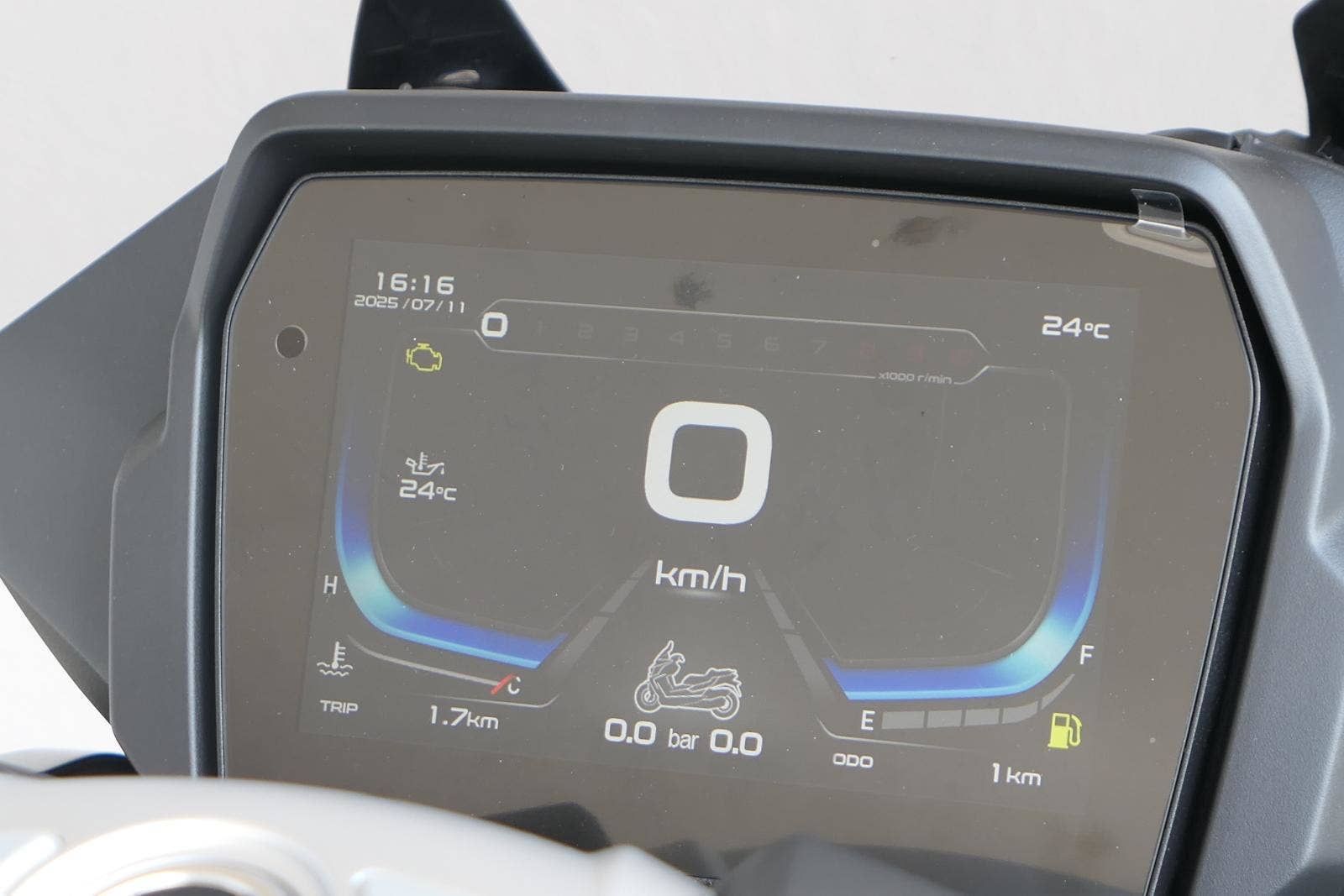 Barevnej 7palcovej TFT displej s konektivitou ti naservíruje veškerý potřebný info. A když veškerý, tak veškerý. Na očích budeš mít nejen klasiku typu spotřeba nebo hodiny, ale taky třeba tlak v pneu a echo o příchozích hovorech.