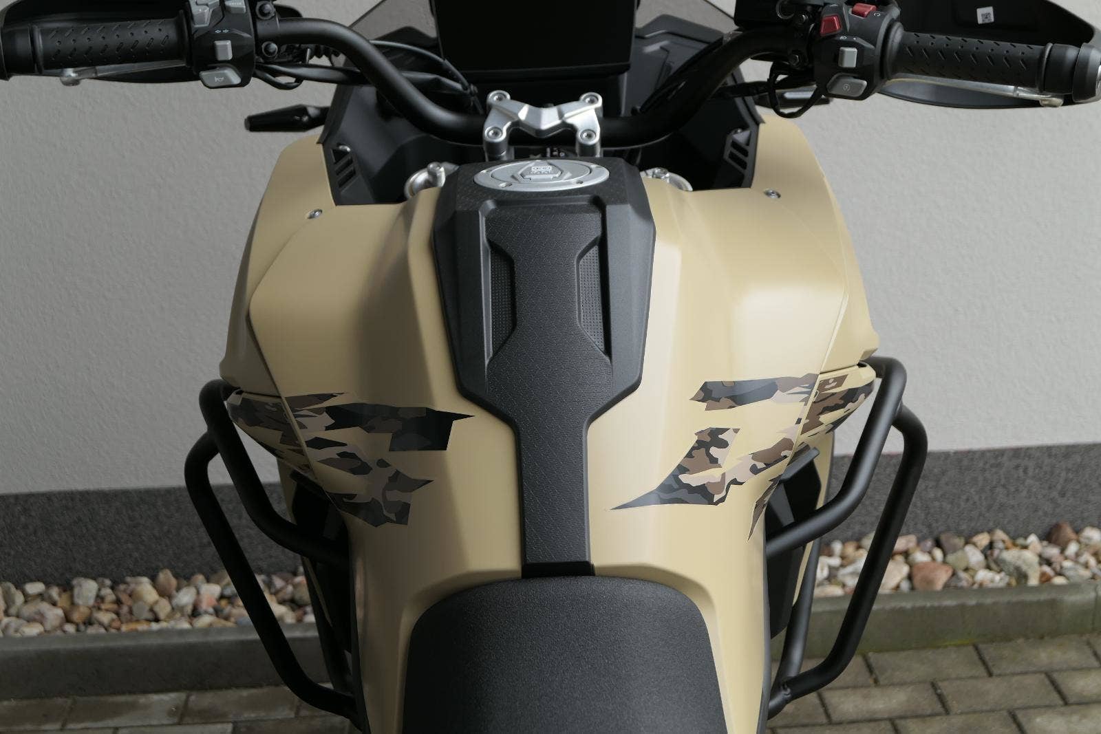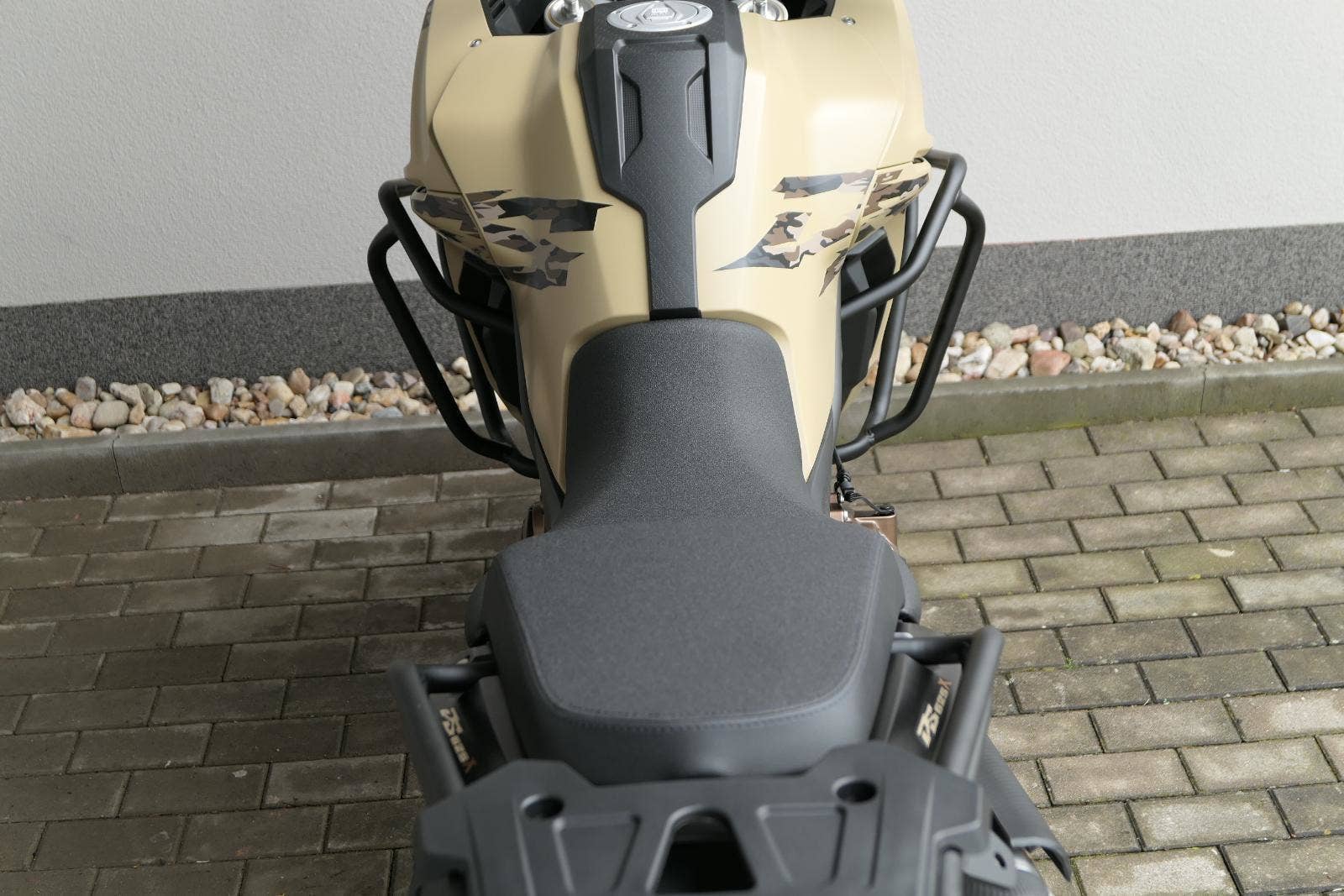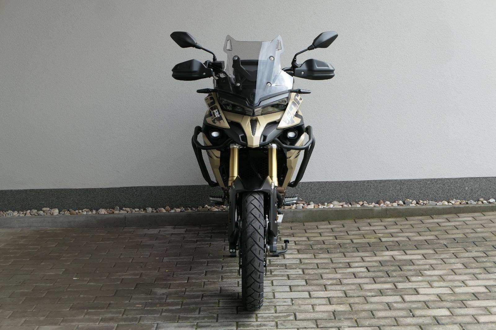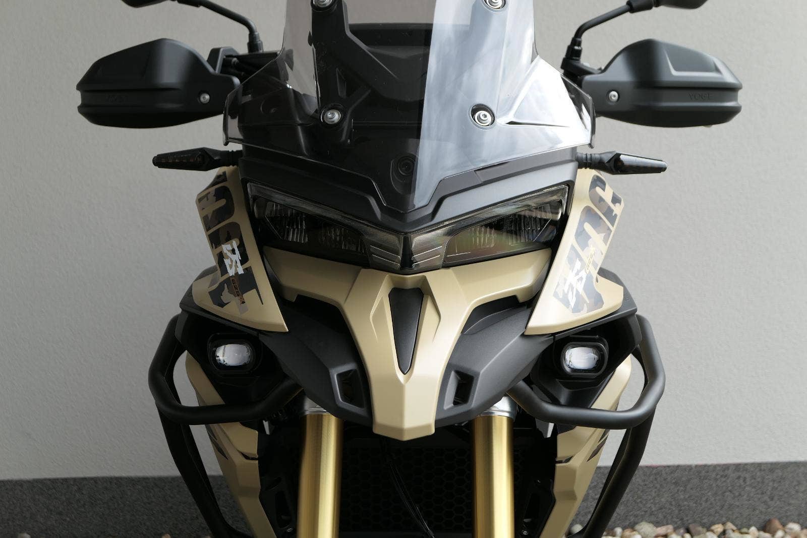Těšit se můžeš taky na plexi, který si z místa řidiče bez nářadí nastavíš do dvou poloh. Oceníš i hliníkovej kryt motoru, LED světla včetně přídavnejch bodovek, boční i středovej stojan a hafo další výbavičky. Jo, a nově mám taky podsvícený ovladače na řídítkách, takže už žádný tápání ve tmě.