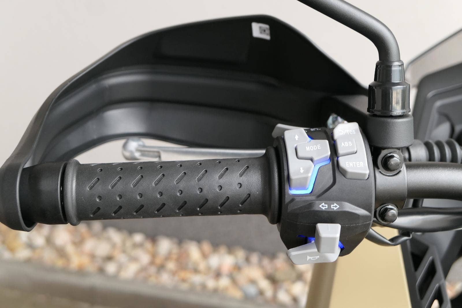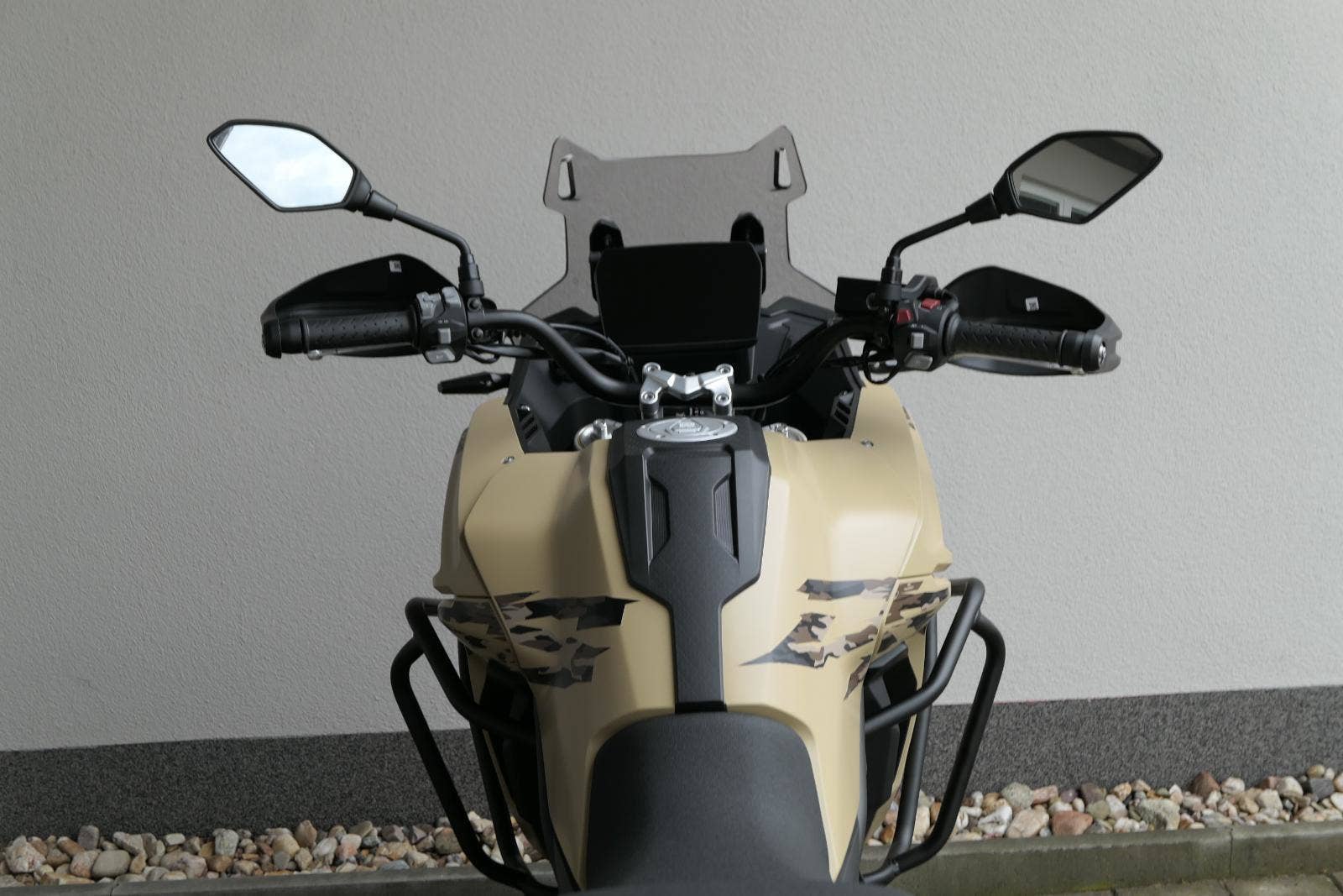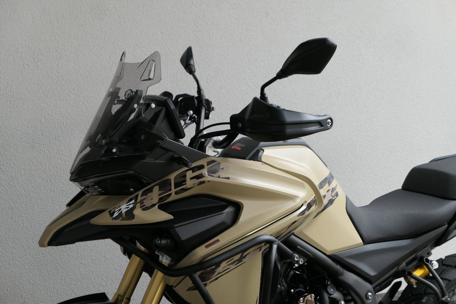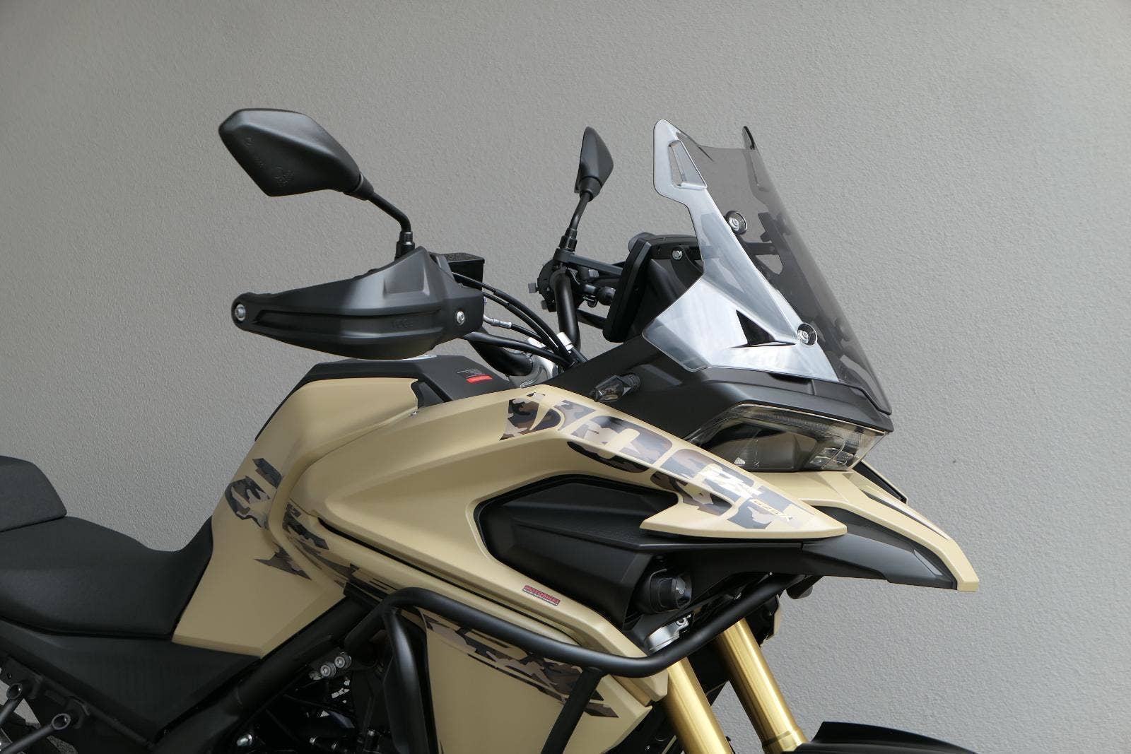 Těšit se můžeš taky na plexi, který si z místa řidiče bez nářadí nastavíš do dvou poloh. Oceníš i hliníkovej kryt motoru, LED světla včetně přídavnejch bodovek, boční i středovej stojan a hafo další výbavičky. Jo, a nově mám taky podsvícený ovladače na řídítkách, takže už žádný tápání ve tmě.