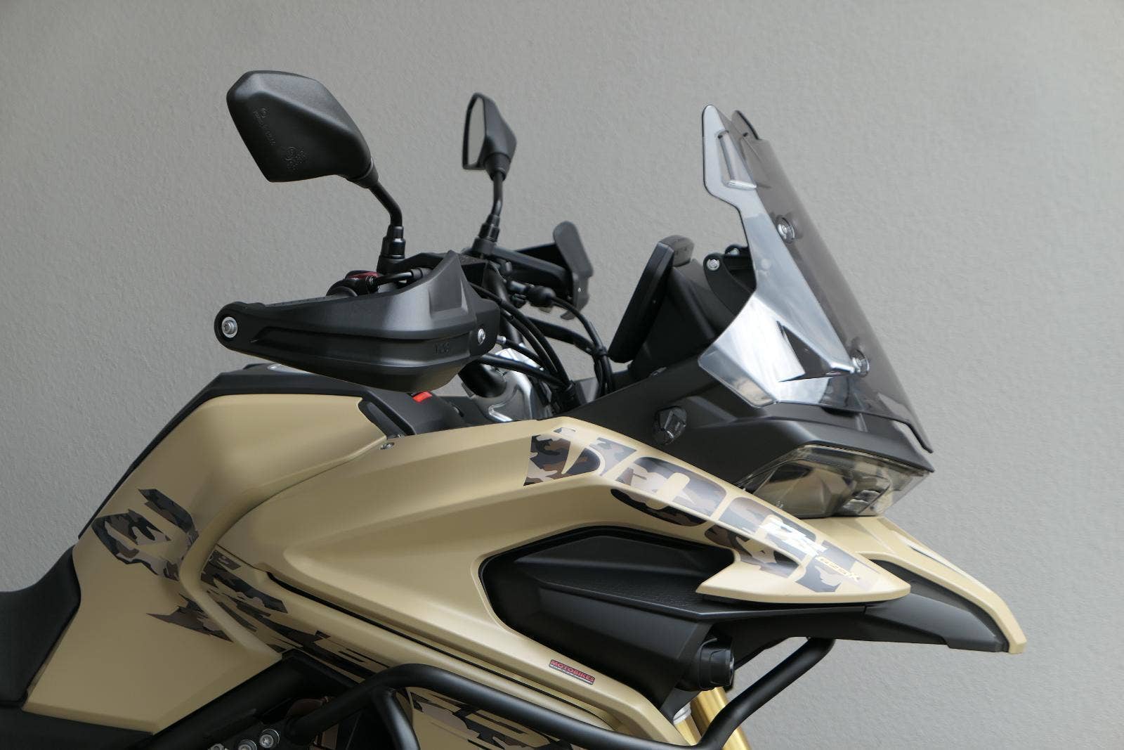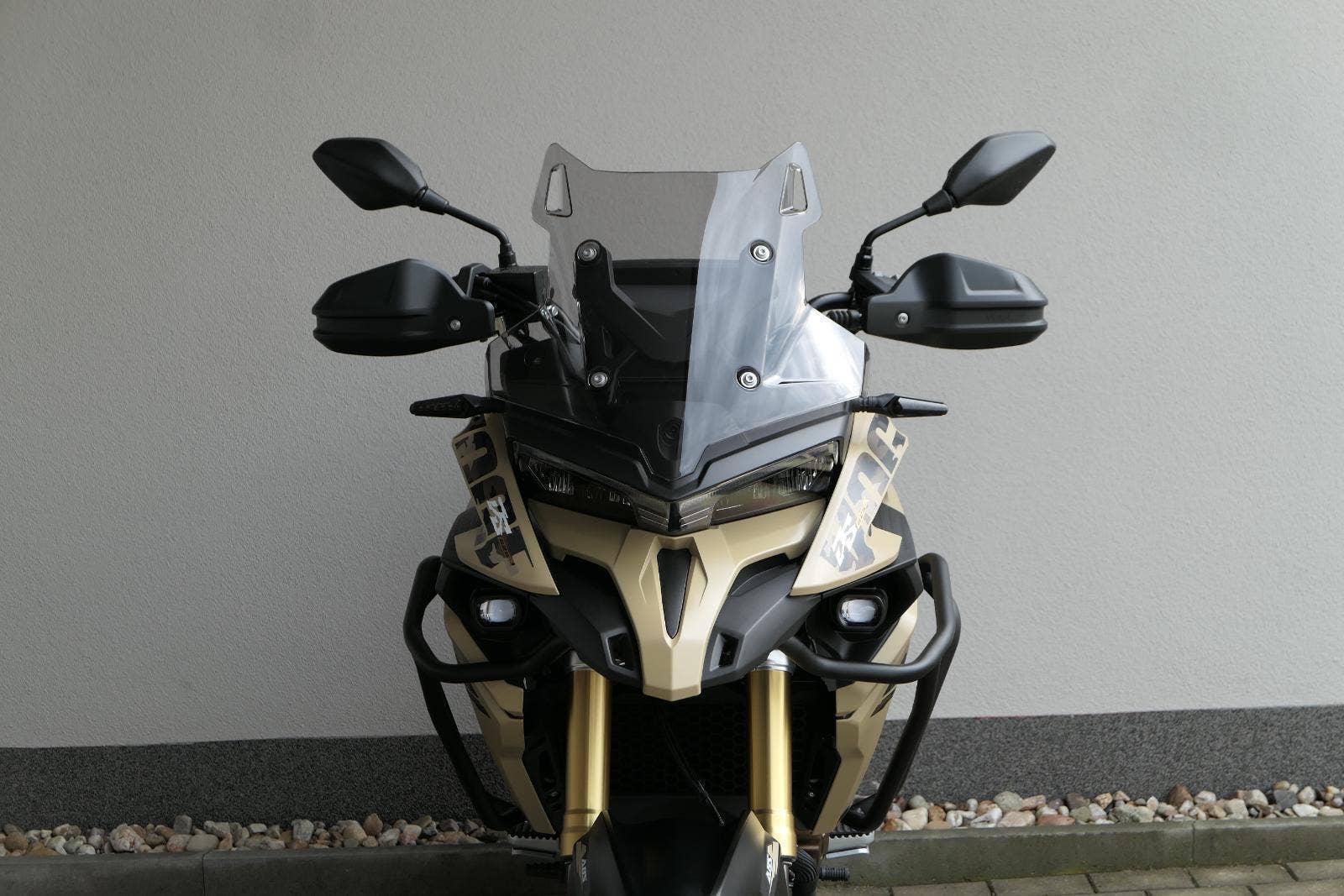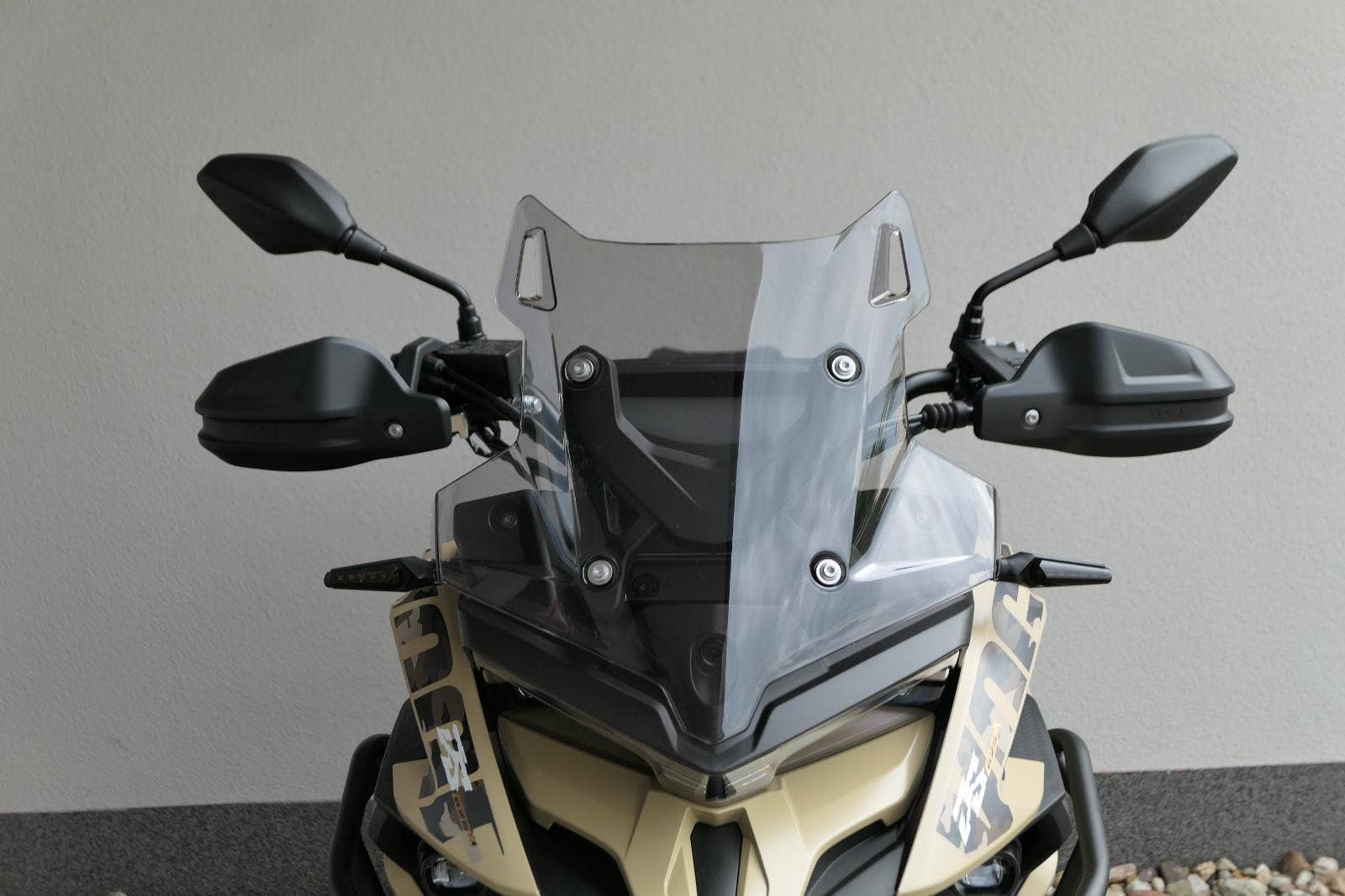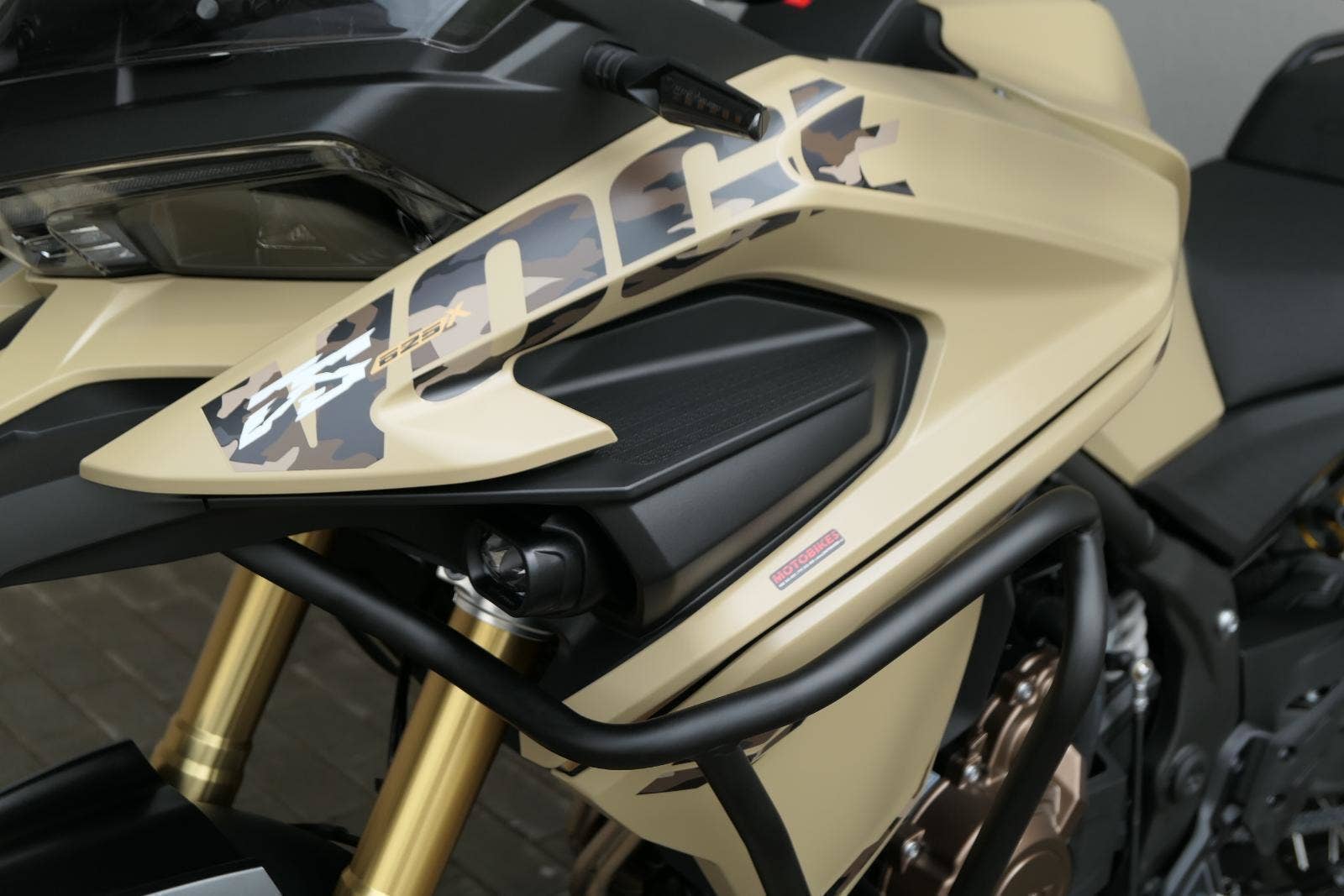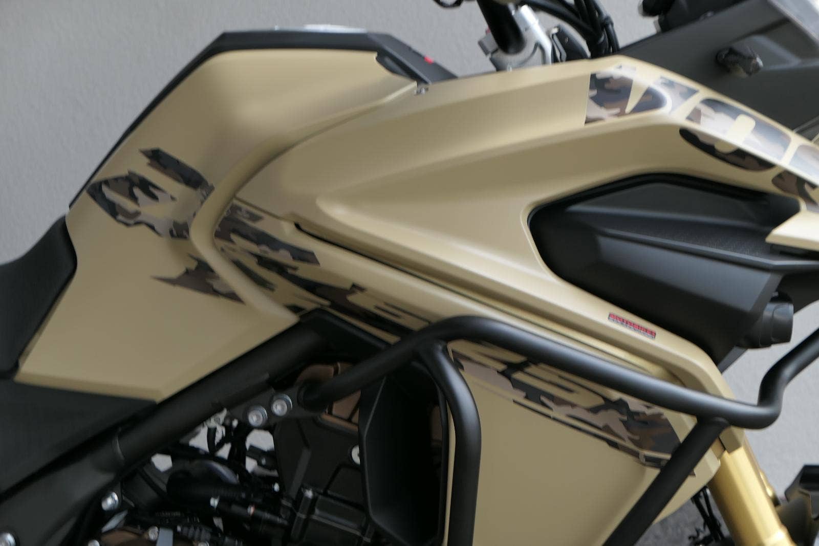 Těšit se můžeš taky na plexi, který si z místa řidiče bez nářadí nastavíš do dvou poloh. Oceníš i hliníkovej kryt motoru, LED světla včetně přídavnejch bodovek, boční i středovej stojan a hafo další výbavičky. Jo, a nově mám taky podsvícený ovladače na řídítkách, takže už žádný tápání ve tmě.