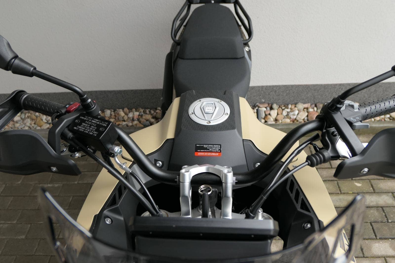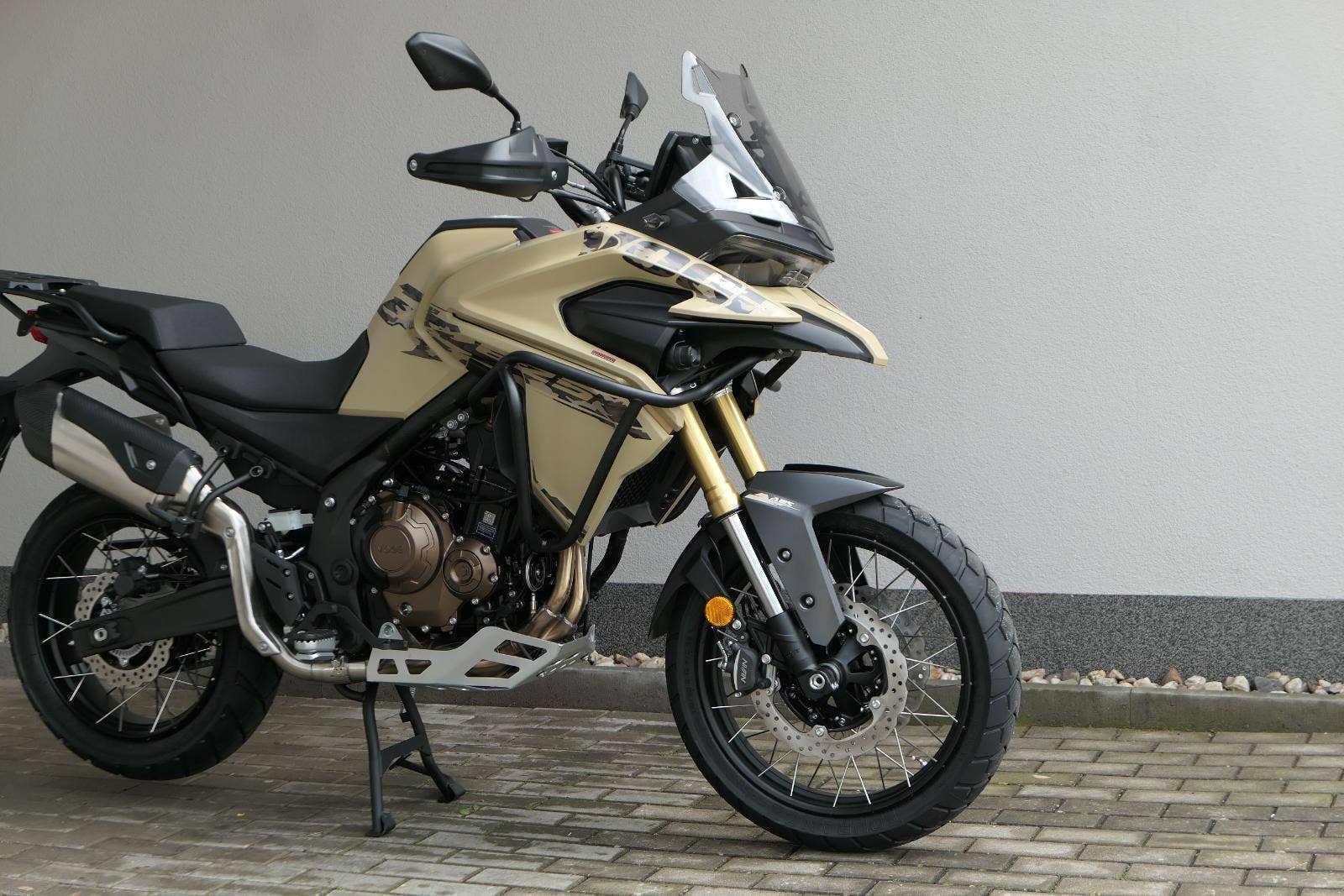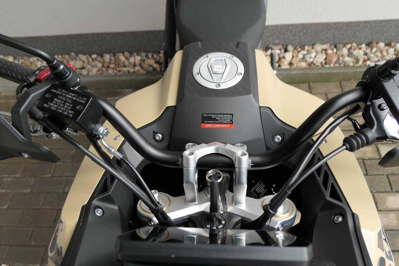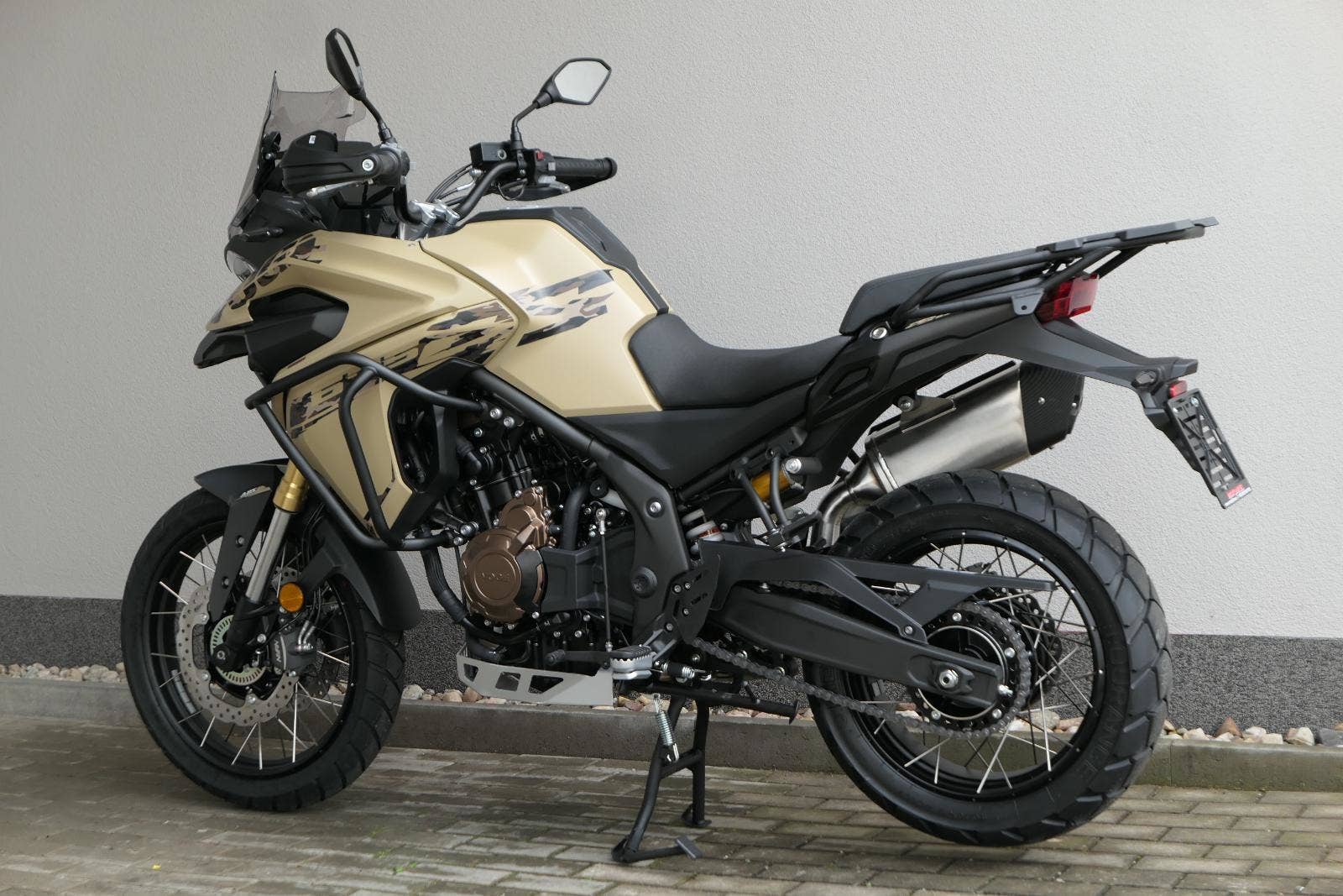Těšit se můžeš taky na plexi, který si z místa řidiče bez nářadí nastavíš do dvou poloh. Oceníš i hliníkovej kryt motoru, LED světla včetně přídavnejch bodovek, boční i středovej stojan a hafo další výbavičky. Jo, a nově mám taky podsvícený ovladače na řídítkách, takže už žádný tápání ve tmě.