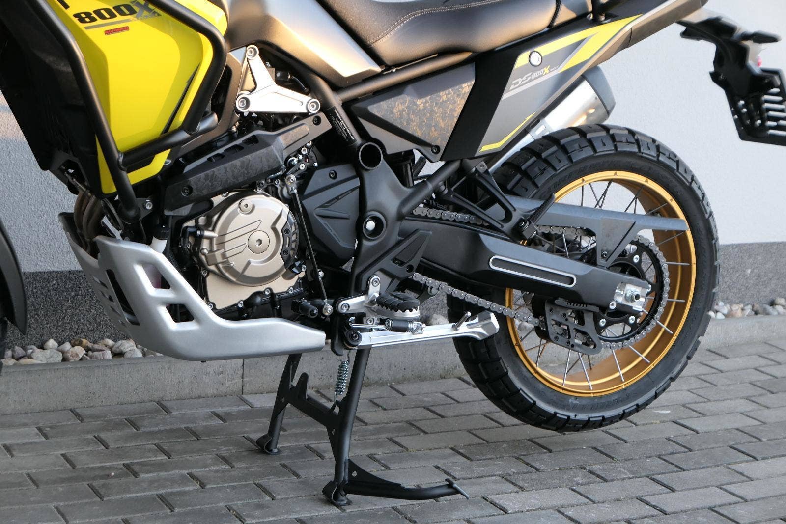 Fungl novej dvouválec 800 ccm. Z tohodle dvouválcovýho vodníka vyždímáš pořádnou sílu. 94 koní tě požene až 190 kiláků v hodině. Vrnět blahem budeš i nad krouťákem – maximum 81 Nm má už v 6 500 otáček. Tenhle fungl novej motor z tebe udělá skutečnýho siláka, ať už budeš frčet po dálnici nebo dovádět v terénu.