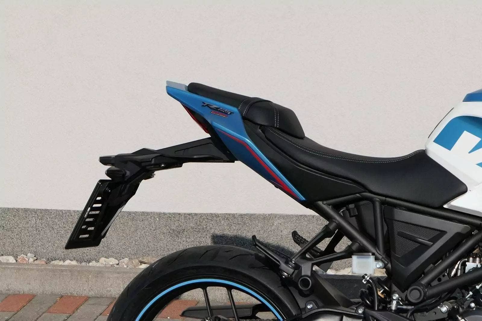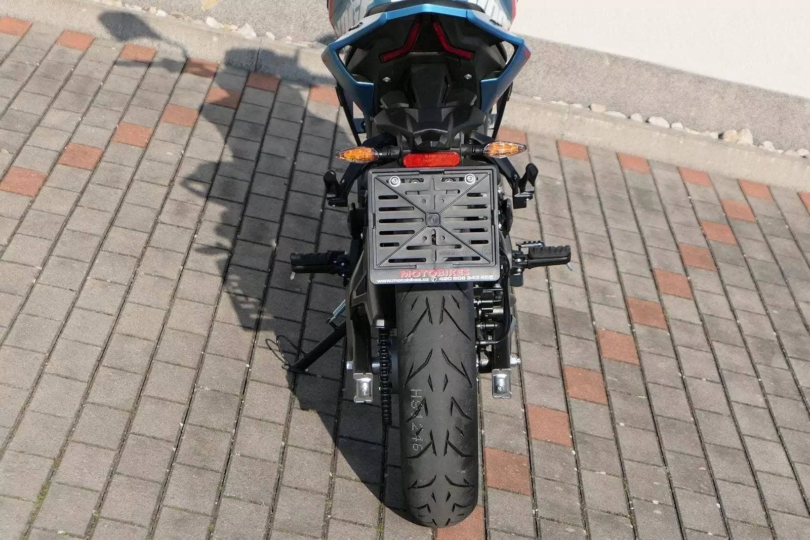 Podvozek je naladěn sportovně, ale přívětivě. Přední upside-down vidlice Ø 35 mm a zadní centrální tlumič zajišťují jistotu v zatáčkách i komfort při běžné jízdě. O bezpečné brzdění se starají kotoučové brzdy vpředu i vzadu doplněné o ABS, které je v základní výbavě. Díky provozní hmotnosti 136 kg je motocykl velmi snadno ovladatelný i pro méně zkušené jezdce.