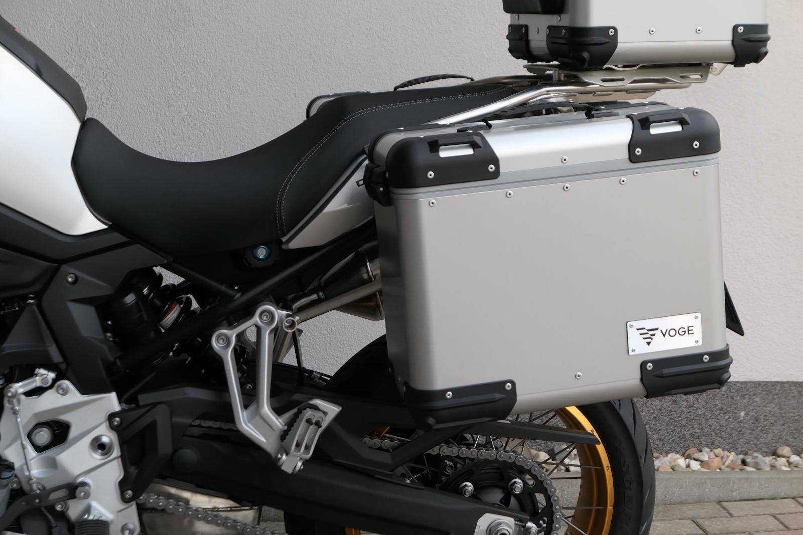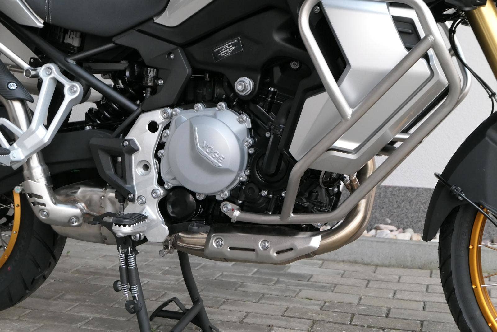 Konstruktéři VOGE zde mysleli na všechno, počítejte sami: od nastavitelného podvozku s velkými zdvihy, vypínatelné kontrole trakce, kompletního osvětlení s LED až po vyhřívanou sedačku. A s výškou sedadla 850 mm i piloti menšího vzrůstu dobře dosáhnou na zem při manipulaci v pomalých rychlostech.