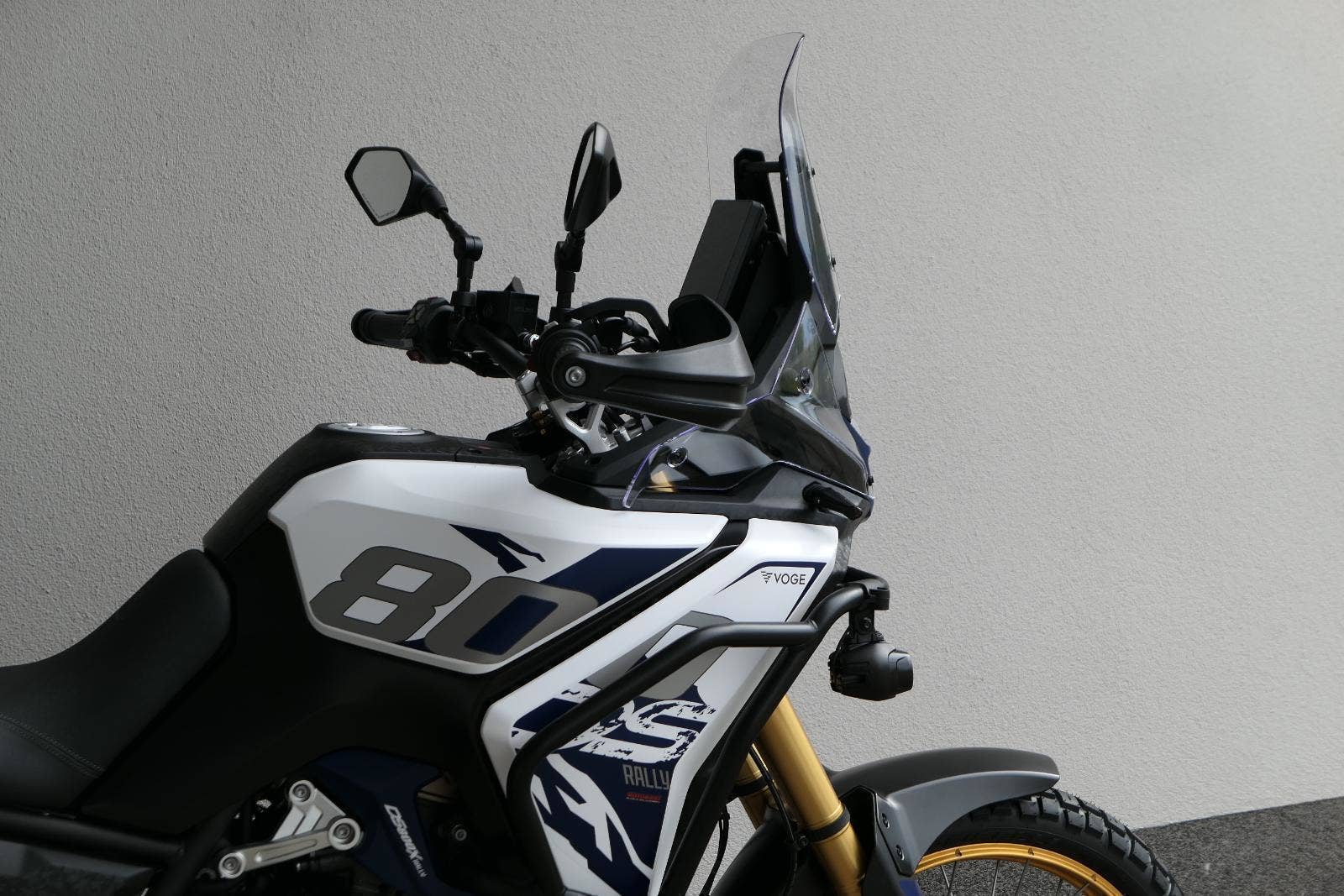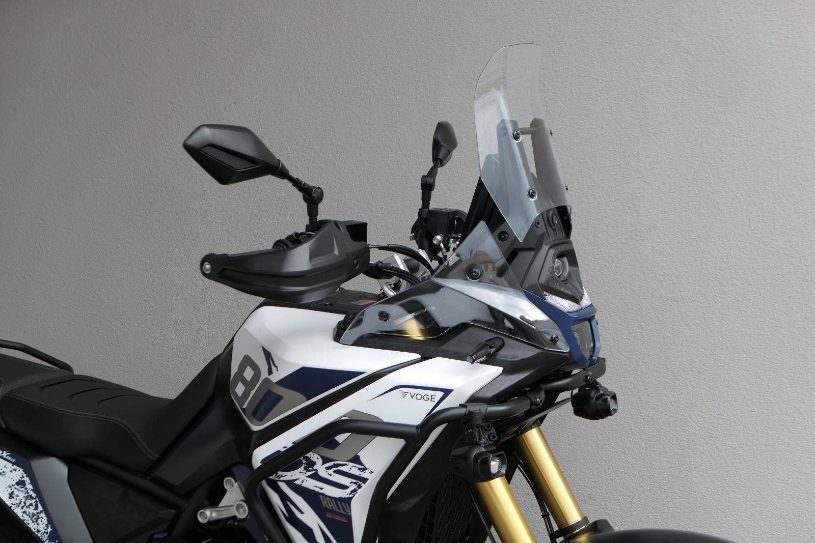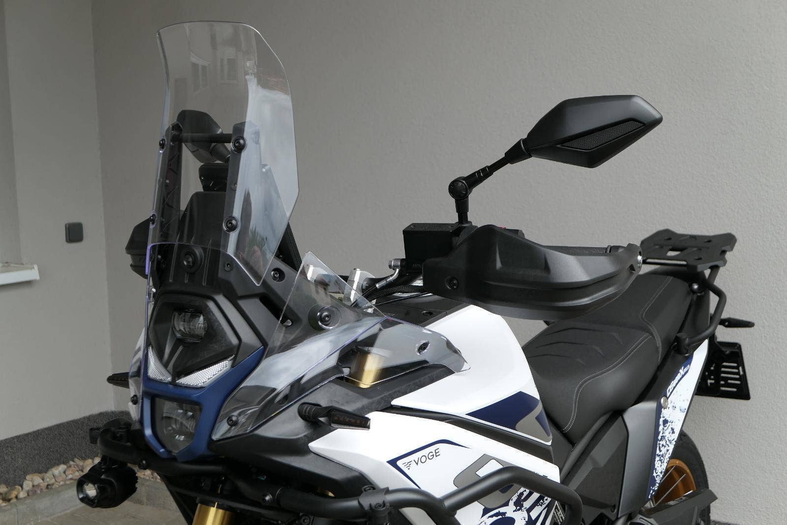 Ne, nejsme na módní přehlídce. Všecko má samozřejmě i praktický důvody: vysoký plexi tě vochrání před větrem i vodou, výkonný LEDky prosvítěj noc jako den. A ten výraznej zobák? Ten taky není jen na parádu. V terénu ho sakramentsky oceníš, až bude polykat odletující šutráky.