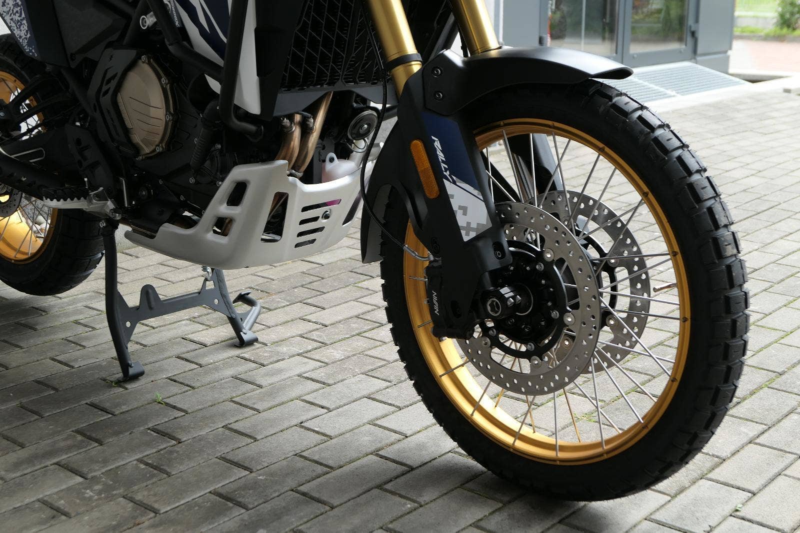 | Přední pneu | 90/90-R21 – bezdušové Pirelli Scorpion Rally |