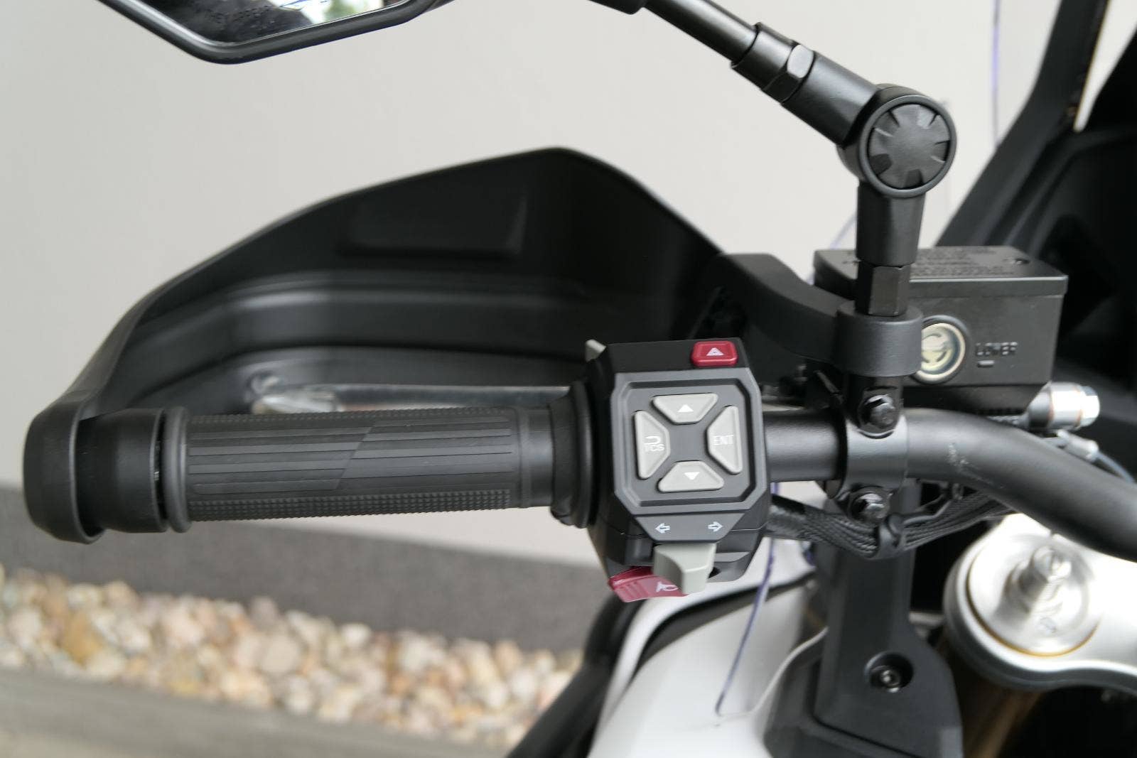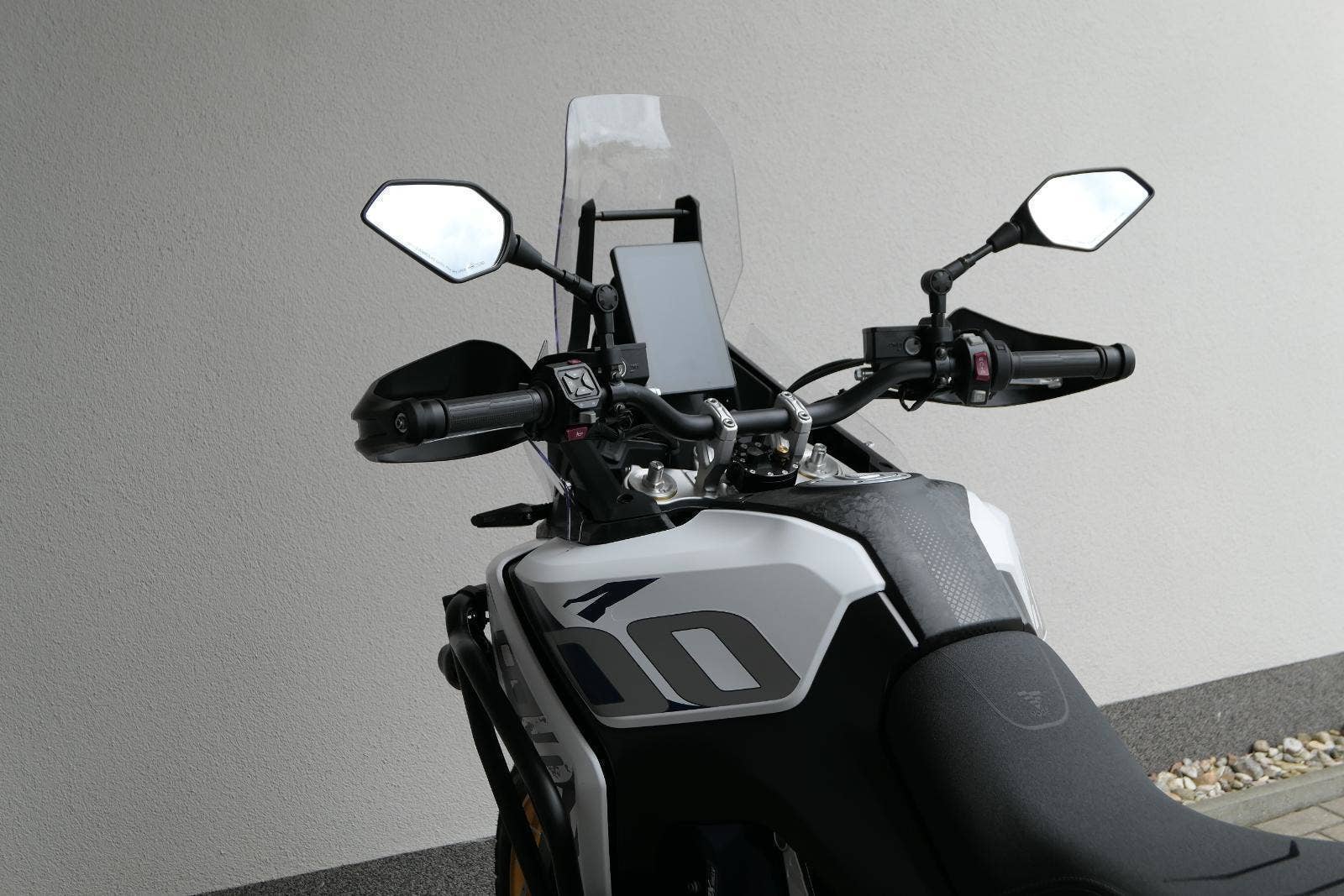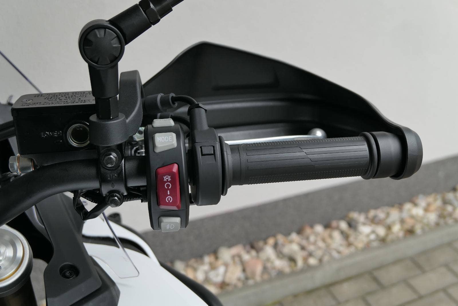 Do vínku jsem dostala elektro výbavu přesně podle teréňácký bible. ABS si můžeš vypnout buď komplet, nebo jen na zadním kole. Vypinatelnou mám samozřejmě taky kontrolu trakce. Hlavně v divočině voceníš rotační tlumič řízení. A když bude kosa, uvítáš vyhřívaný sedlo i gripy. Jasný, určitě seš taky drsňák jako já, ale vyrazit vstříc dobrodružství s troškou komfortu není žádná vostuda.
