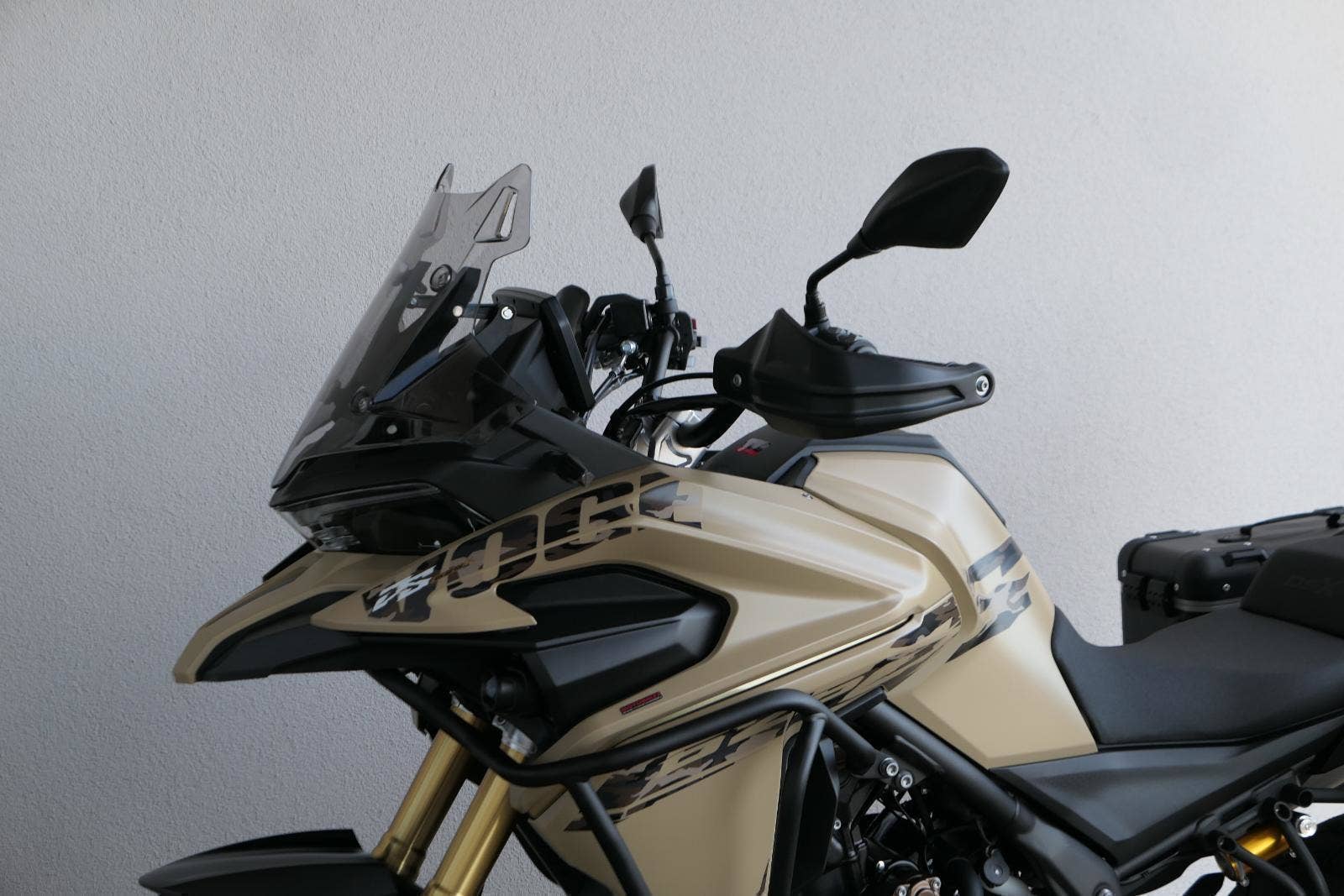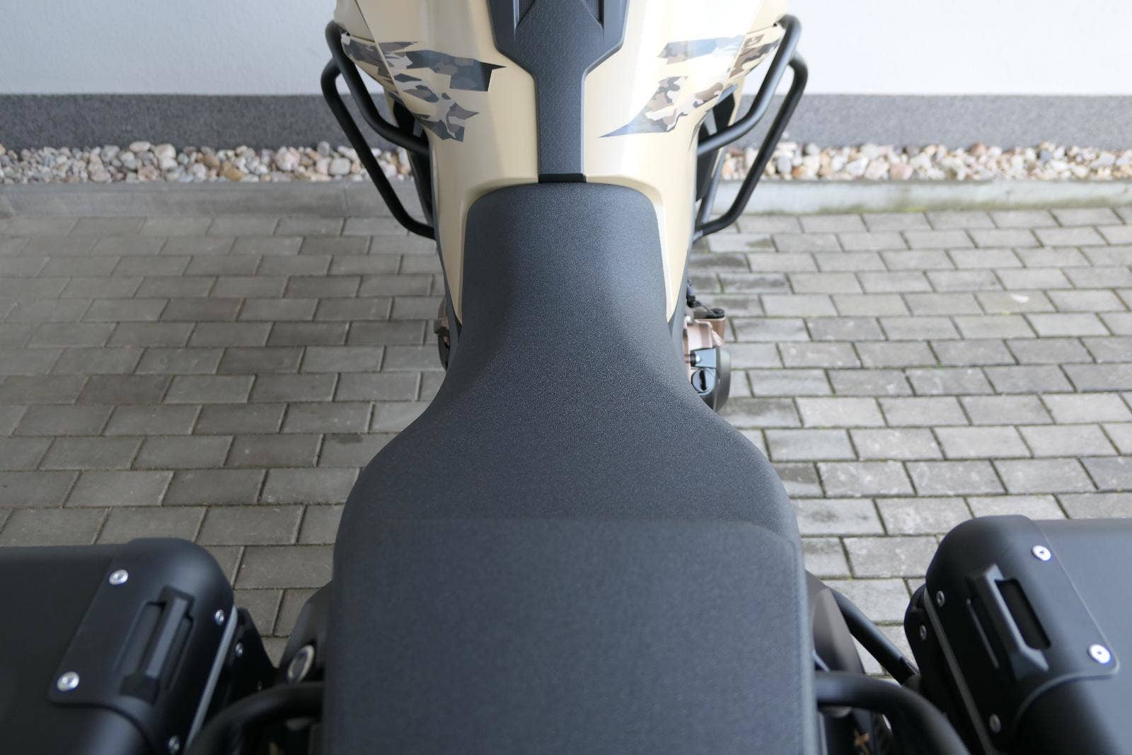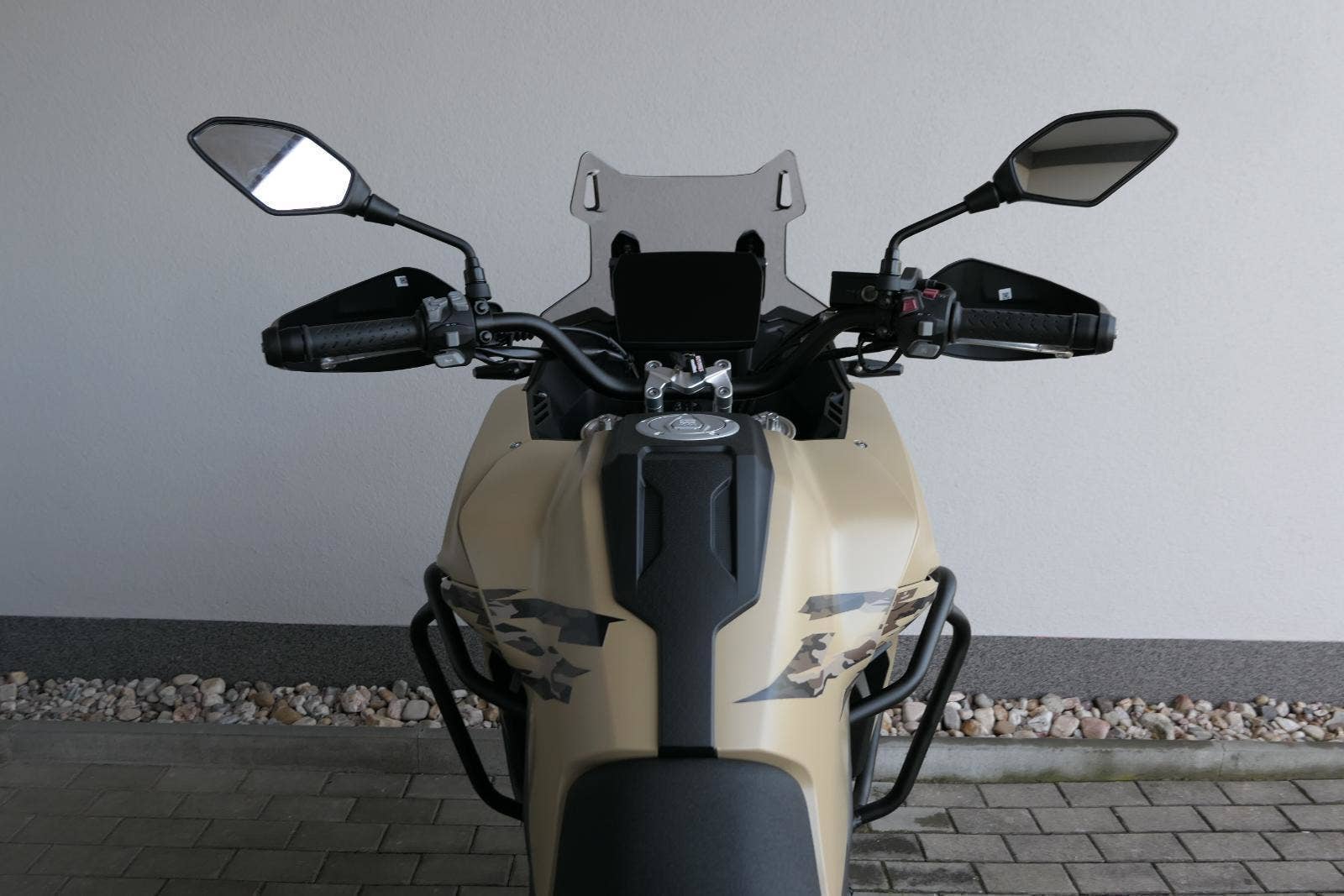 Těšit se můžeš taky na plexi, který si z místa řidiče bez nářadí nastavíš do dvou poloh. Oceníš i hliníkovej kryt motoru, LED světla včetně přídavnejch bodovek, boční i středovej stojan a hafo další výbavičky. Jo, a nově mám taky podsvícený ovladače na řídítkách, takže už žádný tápání ve tmě.
