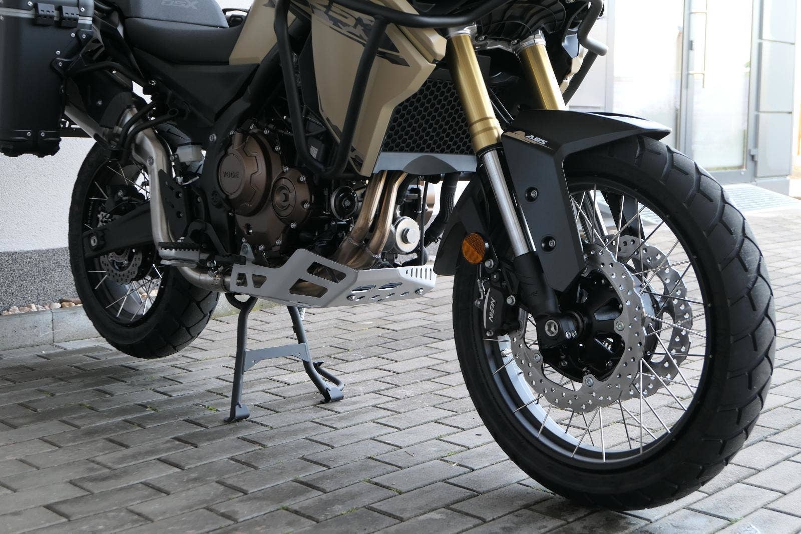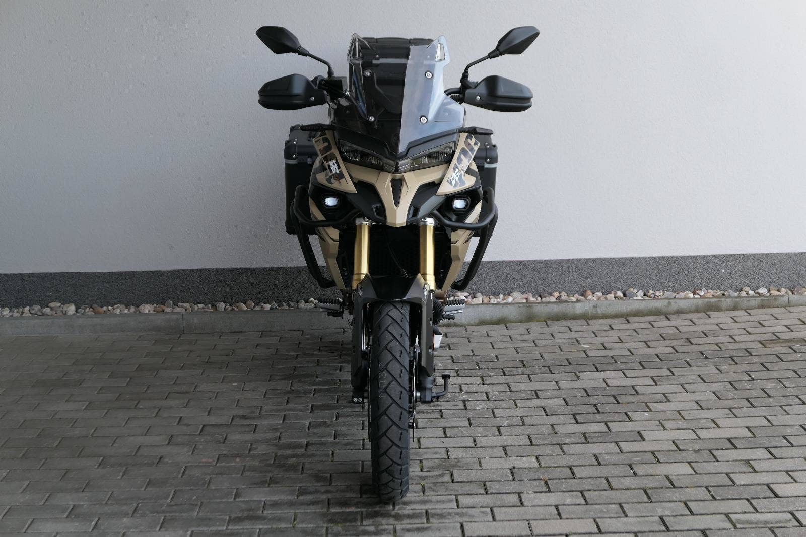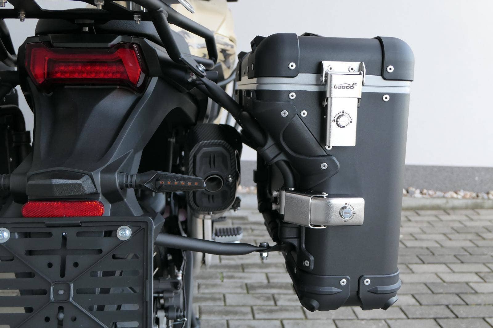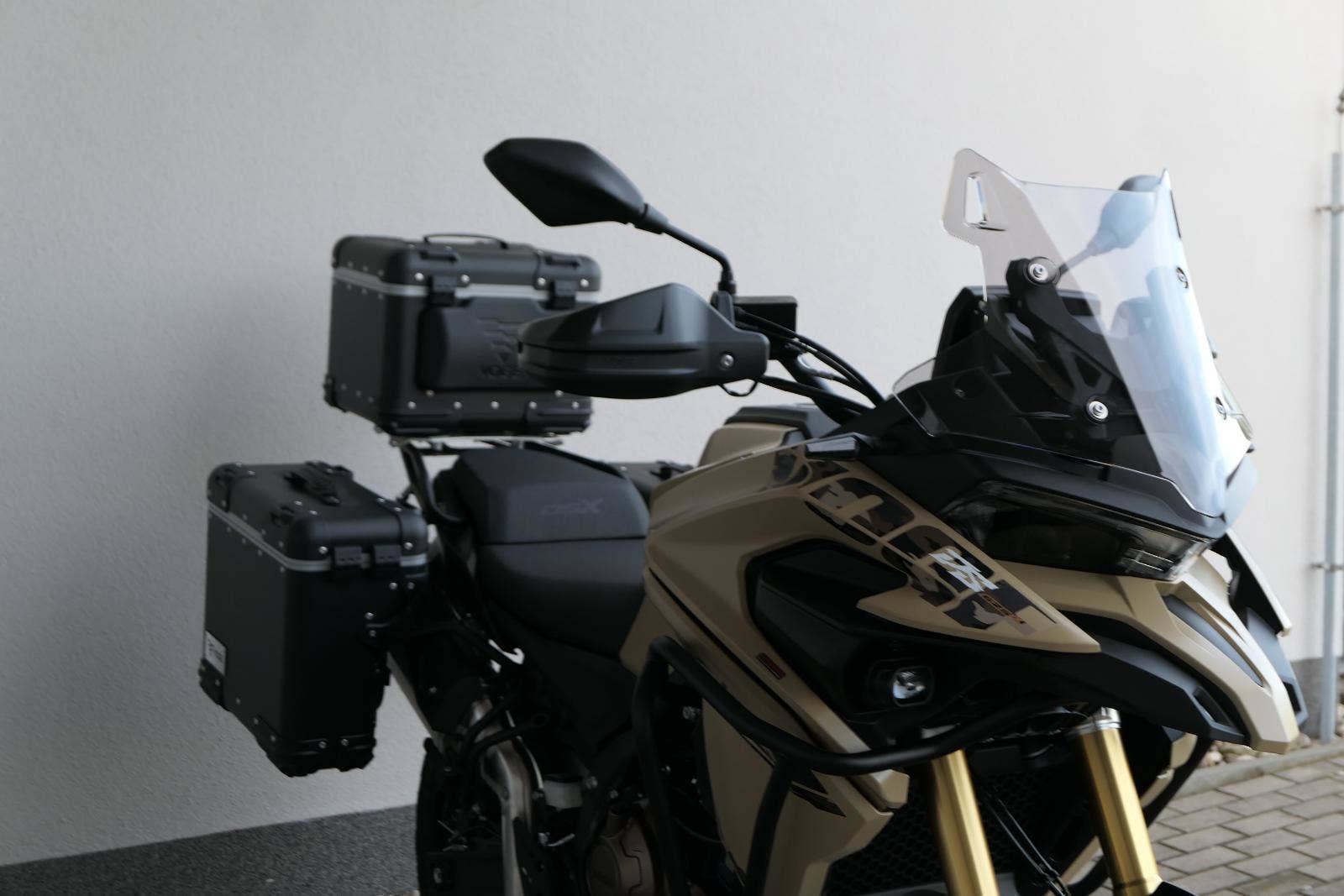 Těšit se můžeš taky na plexi, který si z místa řidiče bez nářadí nastavíš do dvou poloh. Oceníš i hliníkovej kryt motoru, LED světla včetně přídavnejch bodovek, boční i středovej stojan a hafo další výbavičky. Jo, a nově mám taky podsvícený ovladače na řídítkách, takže už žádný tápání ve tmě.