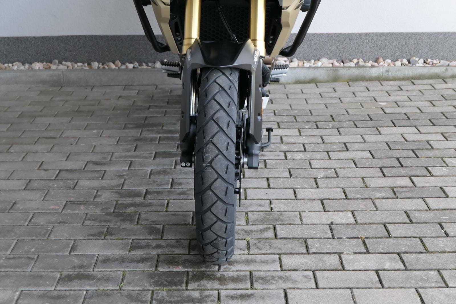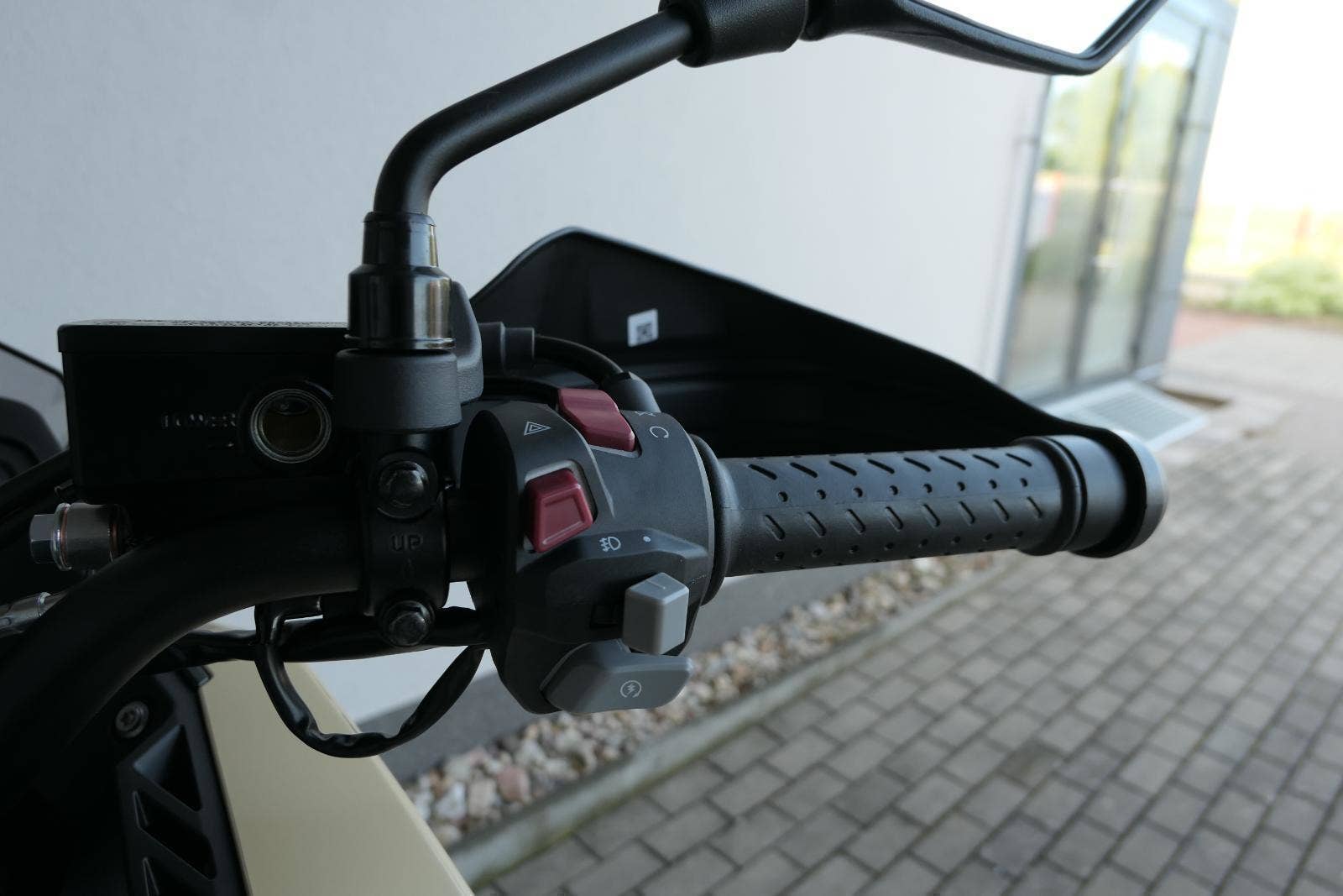 Na fešnejch drátěnejch kolech mám obutý bezdušový gumy Metzeler Tourance. Naprostej spoleh je na topový brzdy od japonskýho Nissinu. Pomocí dvou jízdních režimů mi snadno poručíš, jestli dáme piánko, nebo přitvrdíme v režimu sport.