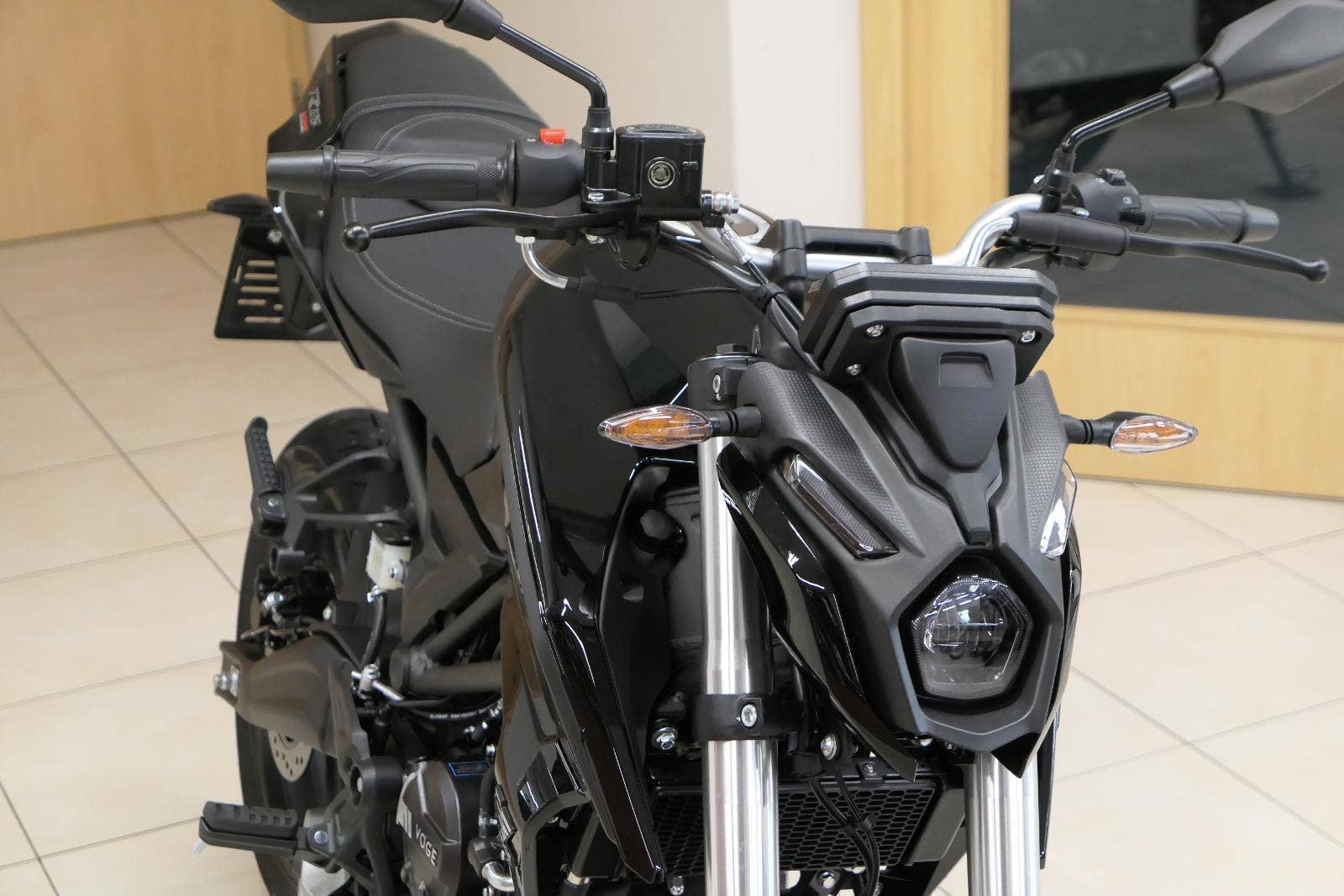Podvozek je naladěn sportovně, ale přívětivě. Přední upside-down vidlice Ø 35 mm a zadní centrální tlumič zajišťují jistotu v zatáčkách i komfort při běžné jízdě. O bezpečné brzdění se starají kotoučové brzdy vpředu i vzadu doplněné o ABS, které je v základní výbavě. Díky provozní hmotnosti 136 kg je motocykl velmi snadno ovladatelný i pro méně zkušené jezdce.